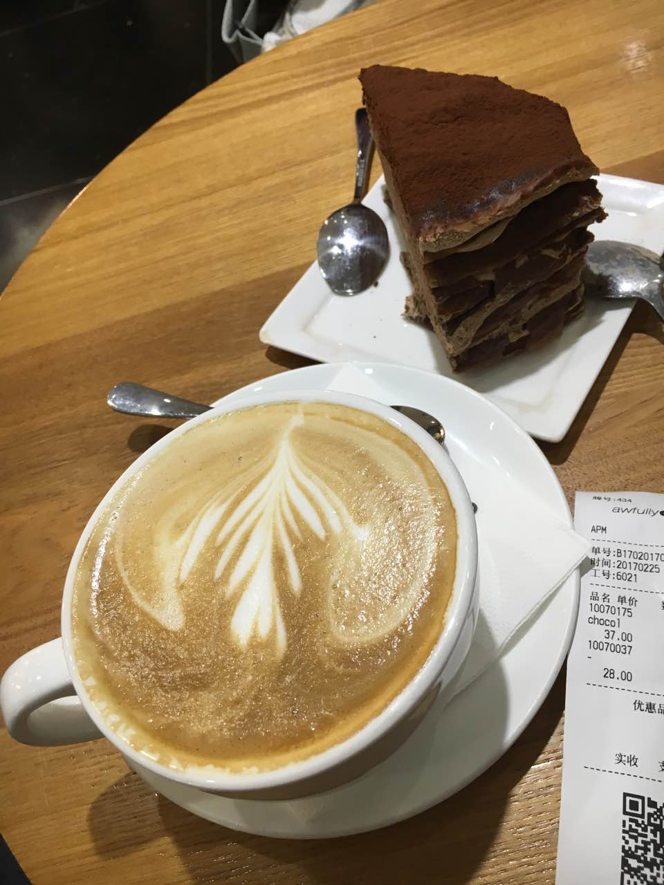 座位超少 盆子超小 每次都让我很纠结……黑巧克力千层...每次都是这个....好吃是好吃的...