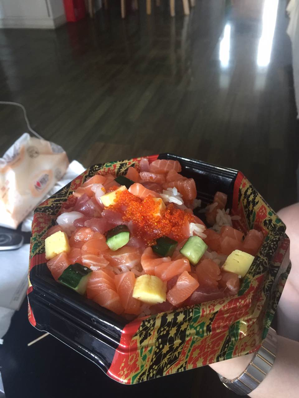 三文鱼粒新鲜,材料质量好,吃起来真过瘾
