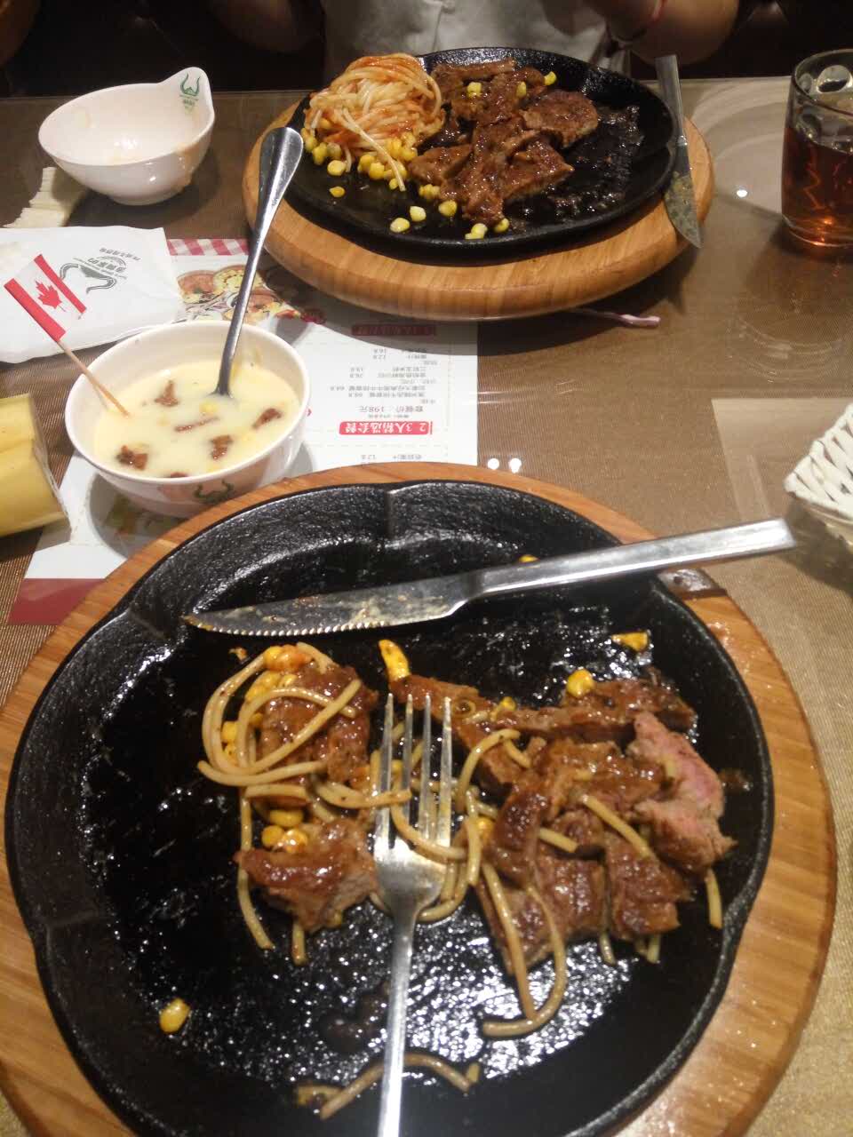 位置很好,牛排很嫩,服务态度好,水果新鲜不限量,吃得饱饱的,很满意,下次再来