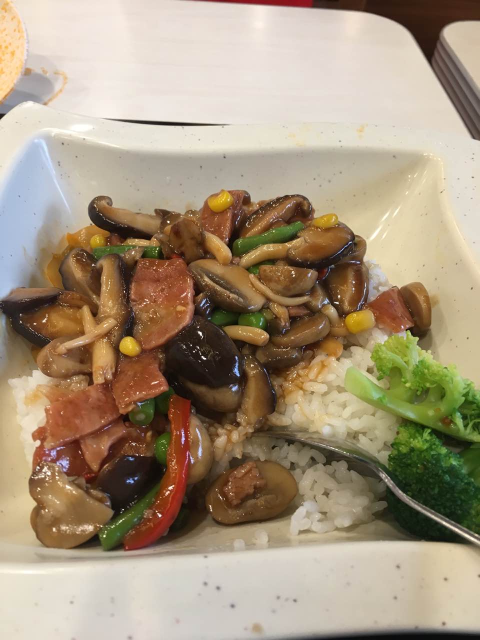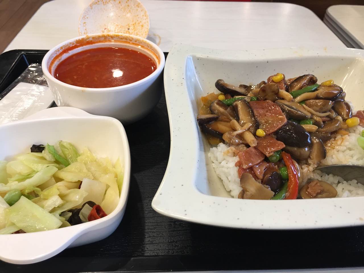 吃的他们的新品,感觉还可以,还是一如既往的喜欢他们家的汤,米饭也是很可口的,喜欢