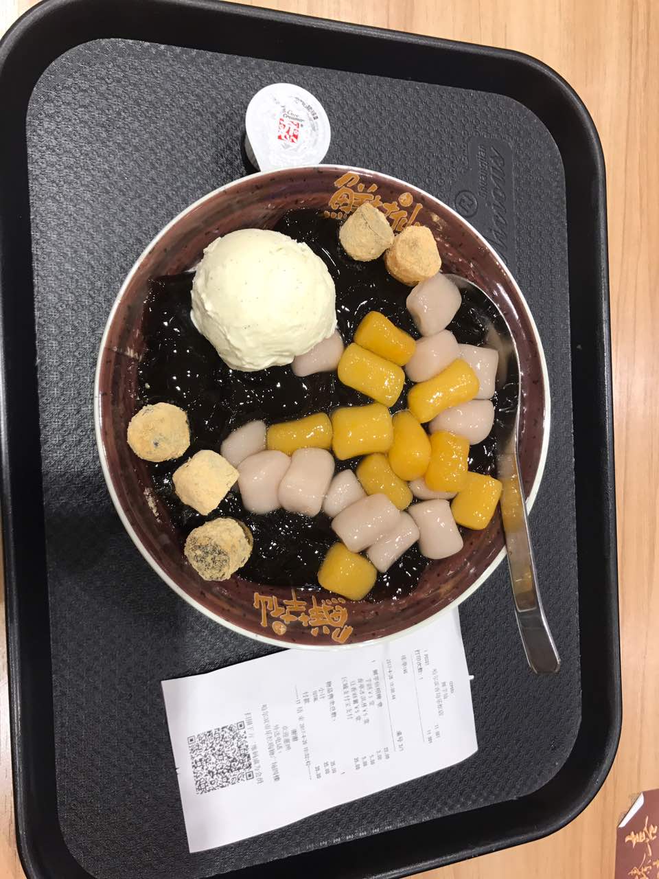 跟其他店一比,这家店的龟苓膏给的好厚啊!真是没有对比就没有伤害!大爱!最爱招牌➕香草冰淇淋➕芋头➕麻薯。ps建议送的奶球不要加进去,我加会恶心,不知道其他妹子是否也有这感觉?单位附近没有店,这点很可惜,下午茶都叫不到。