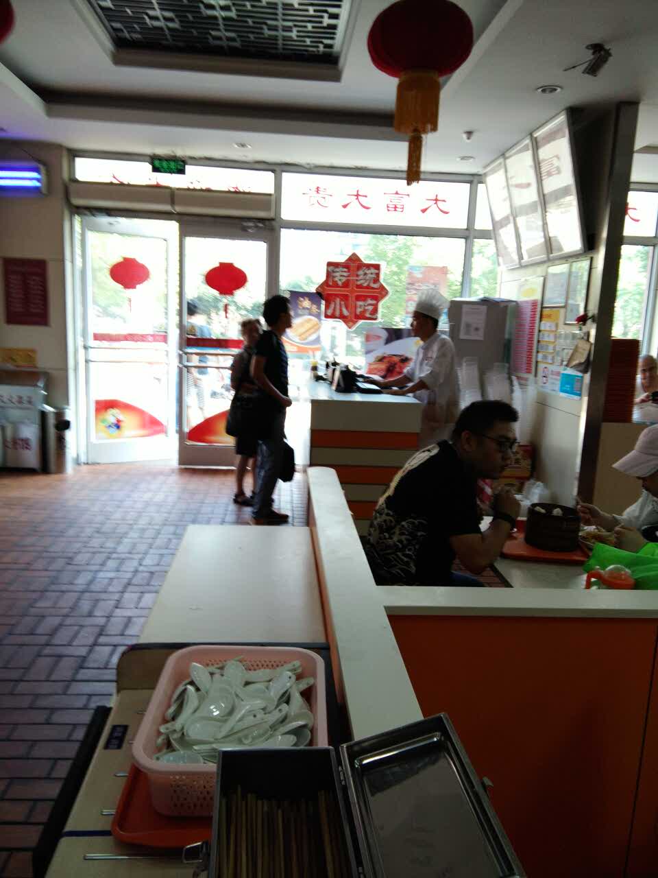 服务态度好!看做生煎的大姐一直转锅子!好大手劲啊!生煎做的底香汁多!好吃
