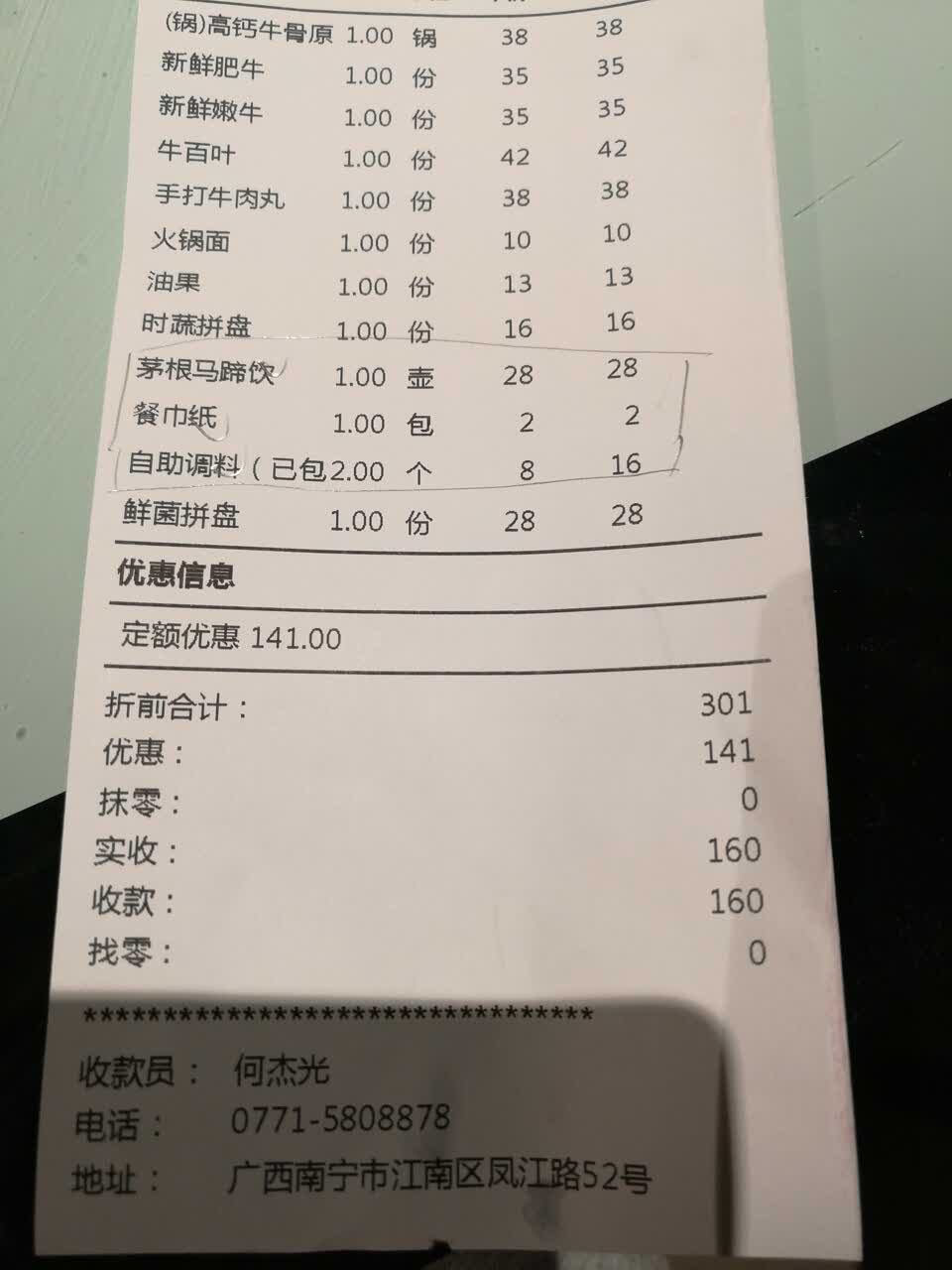 菜品的份量完全对不起价格,太少了点吧,结账的时候看到服务员端出来的都是整盘整盘的牛肉,心里极度不平衡