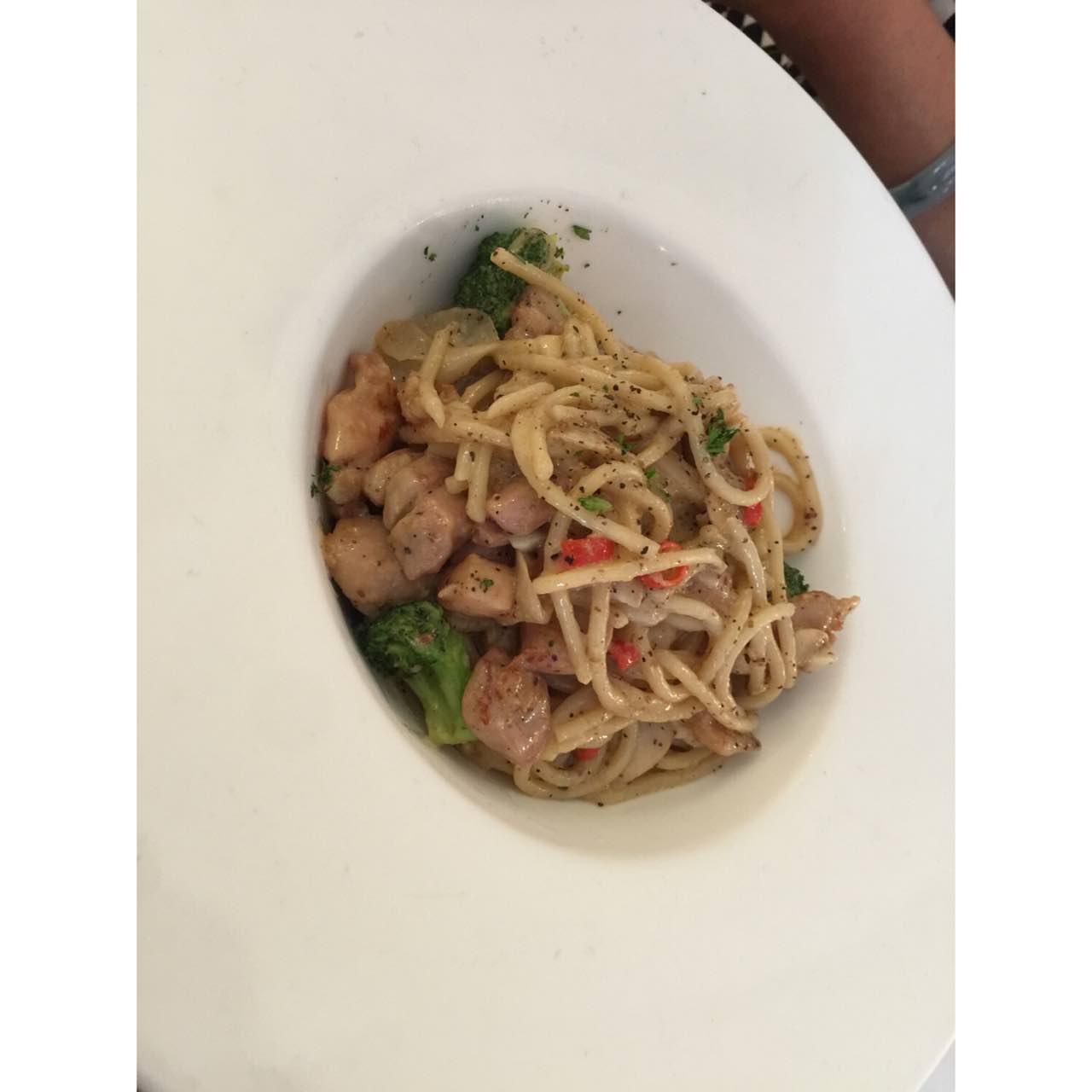 菜的味道不错,就餐环境中午到饭点时候闹一些,两点就没什么人了,相对安静些,不希望太闹的不要赶饭点去就行!上菜实在太慢了,连主菜意面竟然最后上的,足足等了四十分钟,不建议上班族中午就餐,实在太慢了,总体还是可以的!闲暇时可以,有其他事情赶时间时候还是算了吧!墨鱼意面很好吃,就是吃完牙缝都黑了哈哈哈!