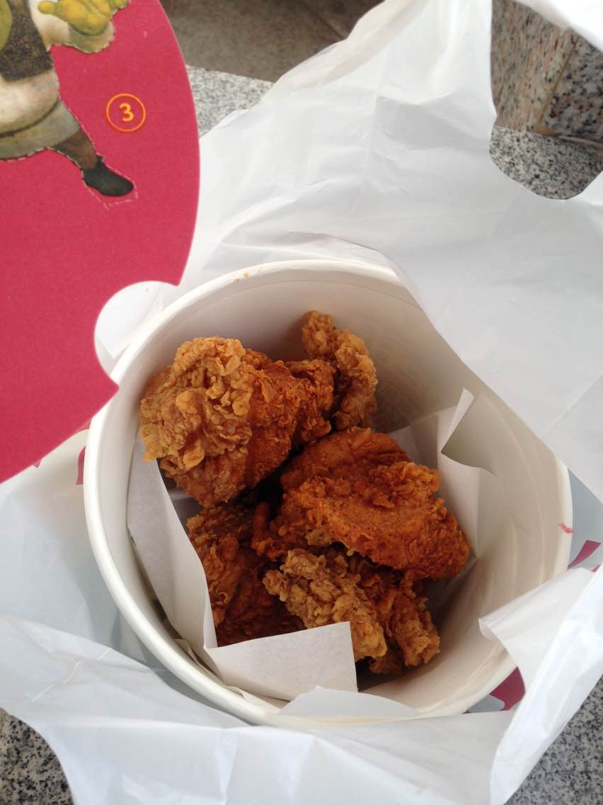 第一次吃这圣诞桶 鸡块好大 份量很足 真心点赞