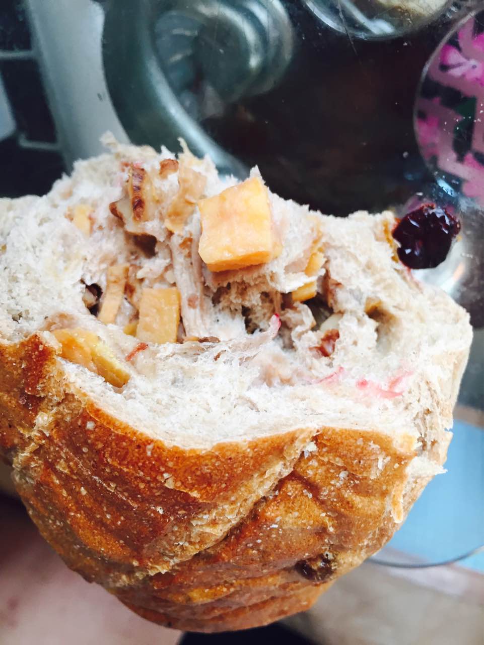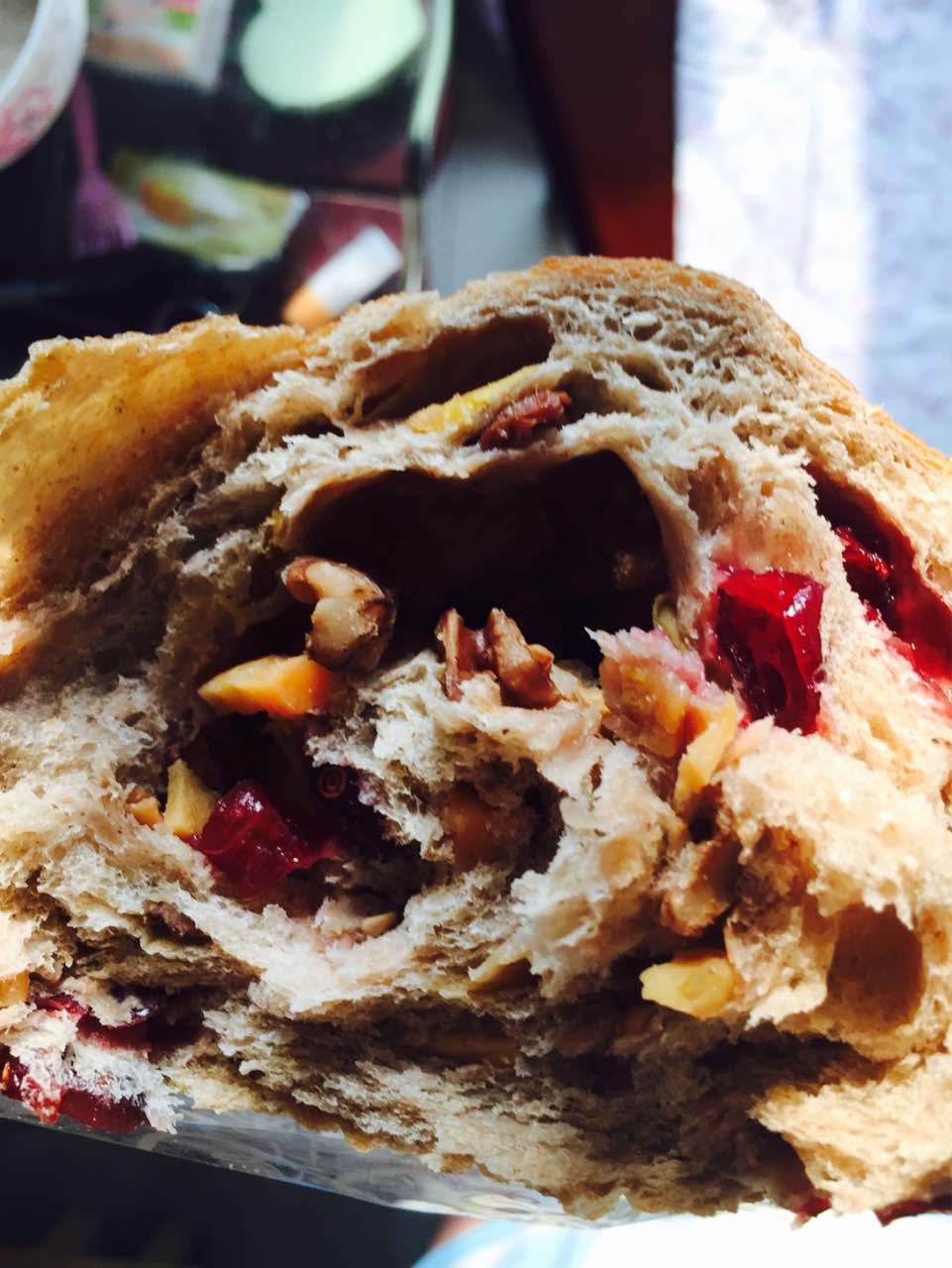 这个面包很不错哦,很喜欢吃,还有一款巧克力豆果仁的也很好吃!