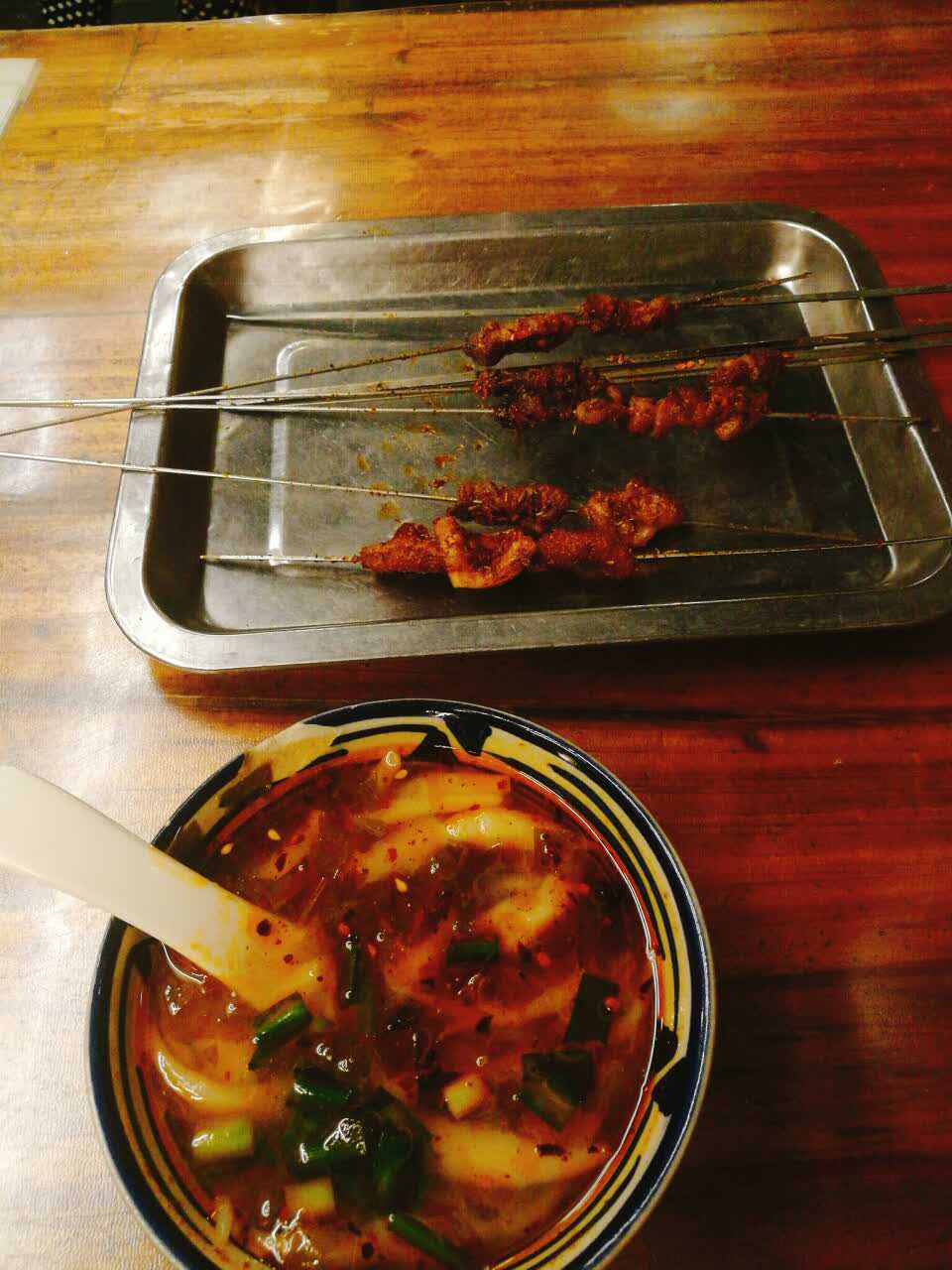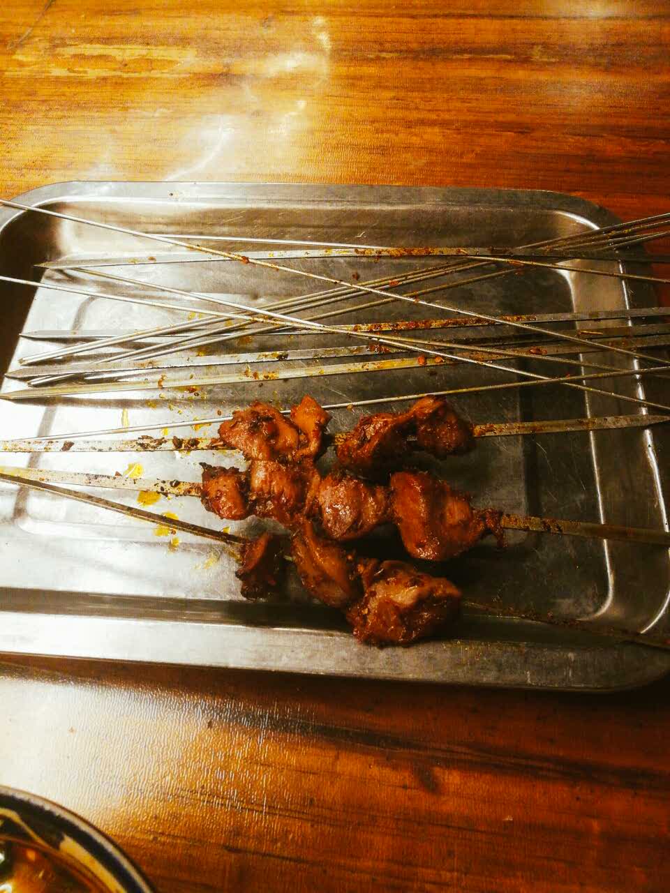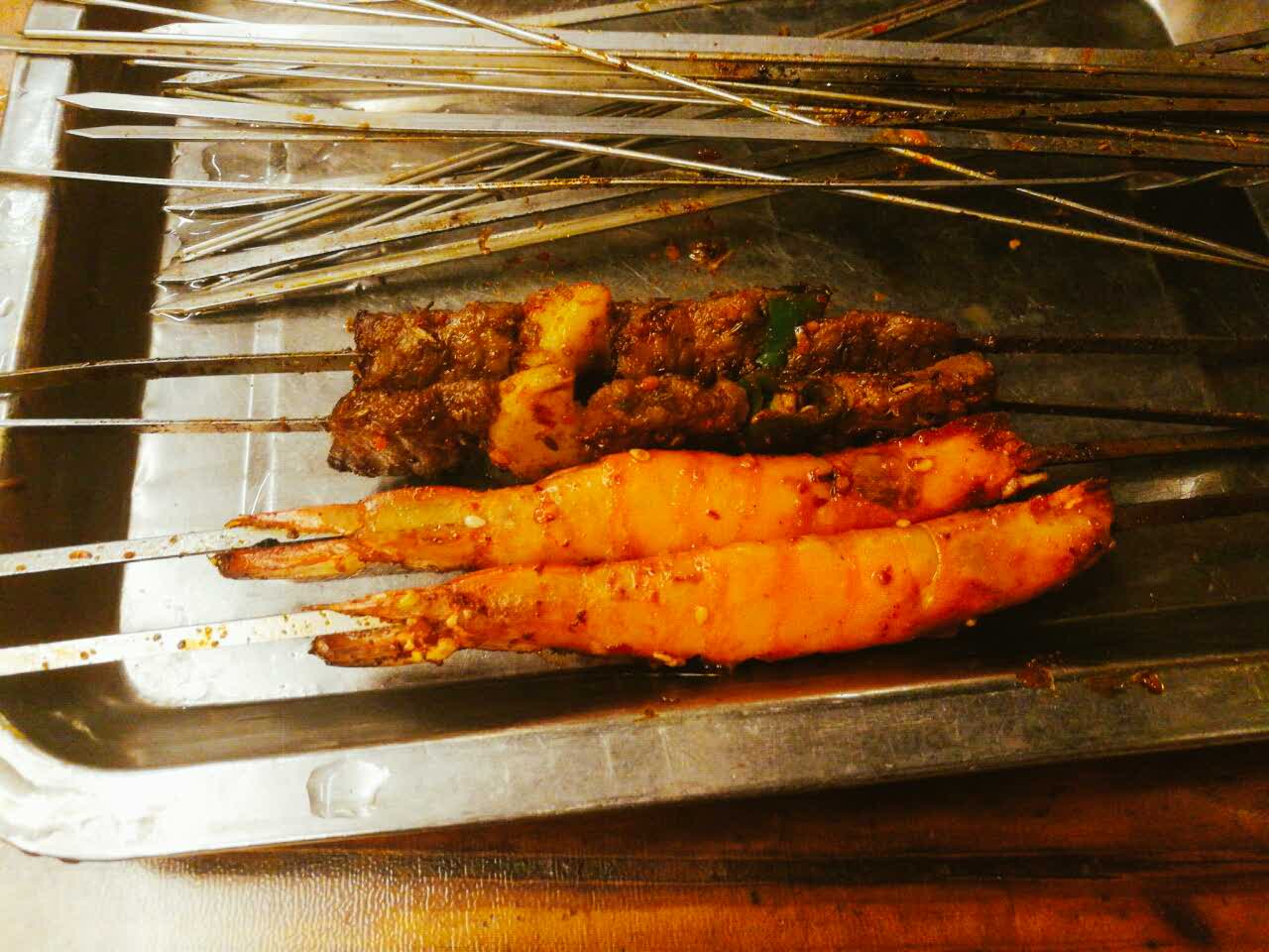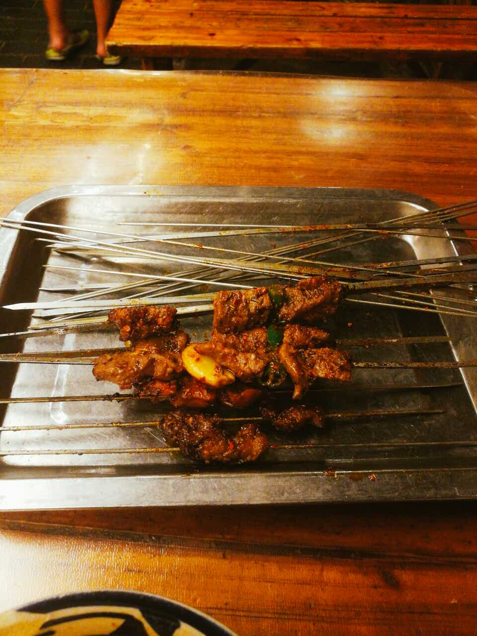 蒜瓣牛肉好吃!!!小伙伴推荐的羊排没试,说是要一斤起,鉴于我是一个不爱吃羊肉只想试试味道的,还是划掉了羊排_(:з」∠)_烤串们味道也很赞!