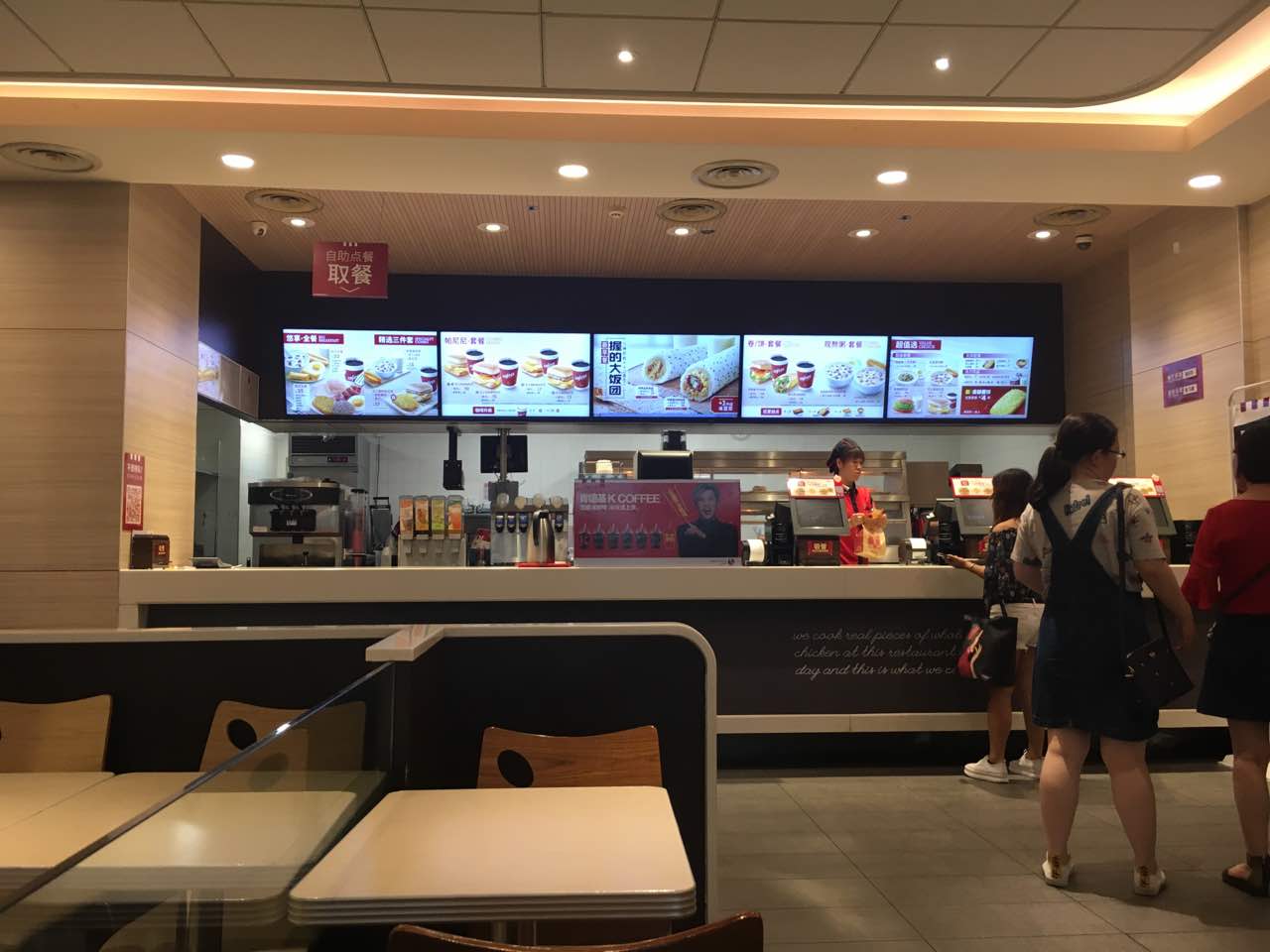 这里人不是很多,点餐很快。味道一如既往的好,食品也可靠放心。