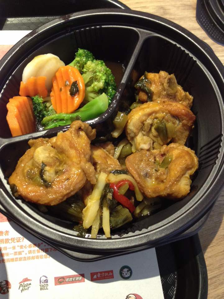 桶饭味道不错,微辣,鸡米花和烤翅味道也很好。