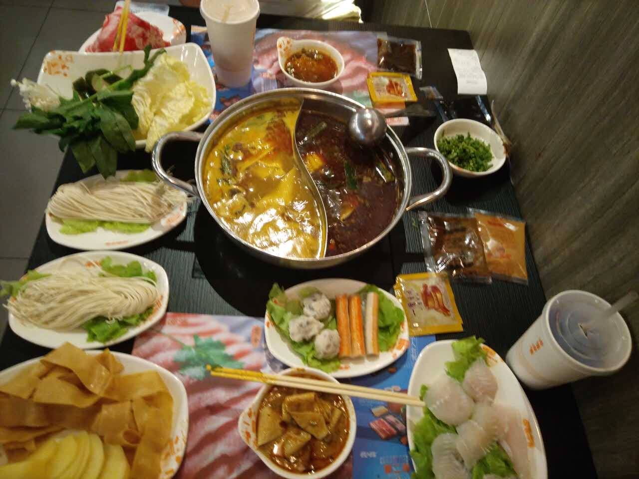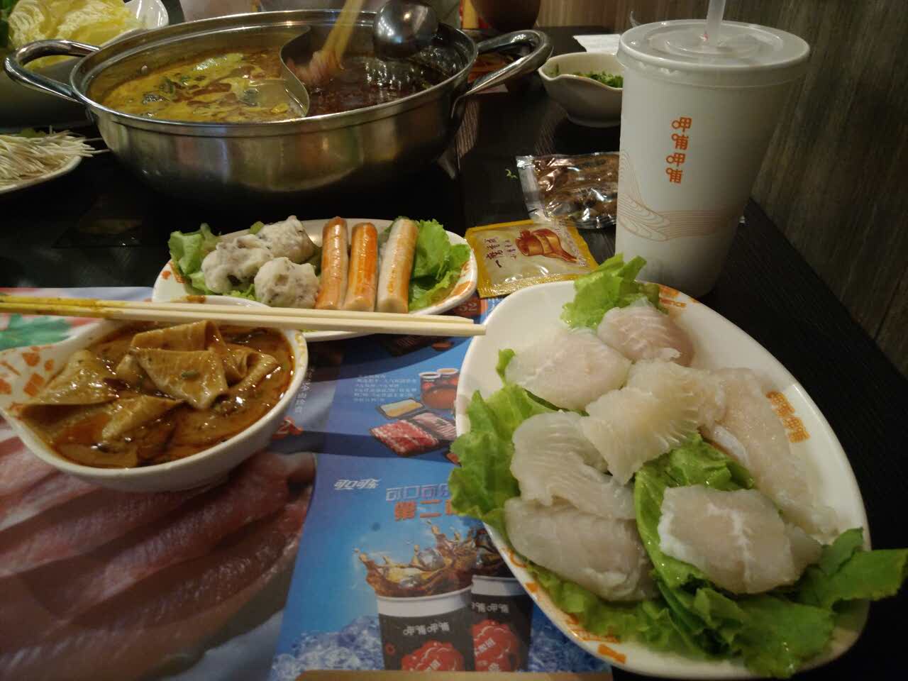 ...这里很干净,装修风格也是我喜欢的,吃饭的人很多,不过到是也没怎么排队,特别有吃火锅的感觉,哈哈我们点了黄金松板肉套餐,很实惠,很多种类,感觉套餐的菜搭配很合理,还加了一个巴沙鱼,也很不错,这里很干净,装修风格也是我喜欢的,吃饭的人很多,不过到是也没怎么排队,特别有吃火锅的感觉,哈哈!