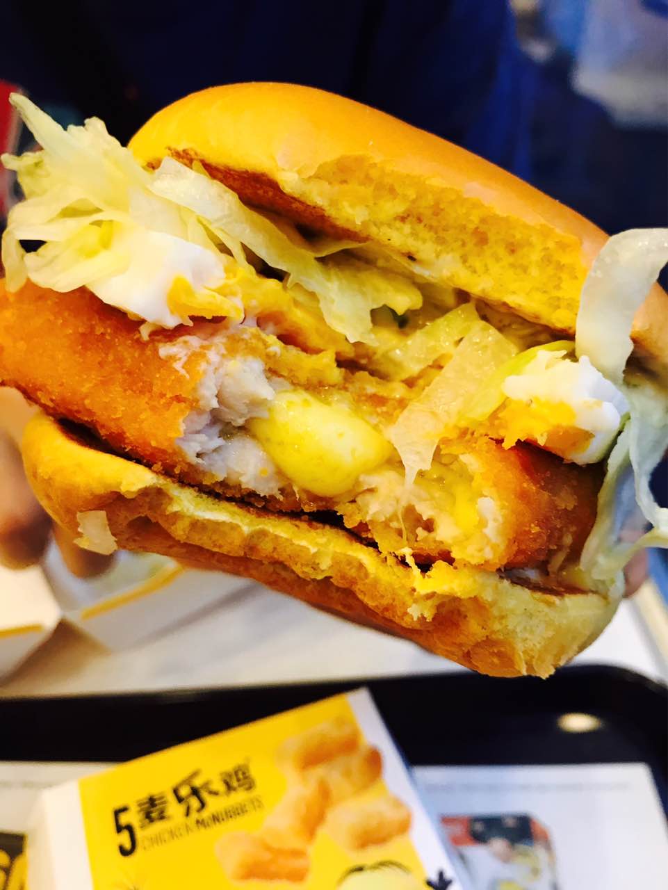 好吃的芝啦啦汉堡。遗憾的是麦乐鸡芝士风味酱没有了,改天一定要吃到