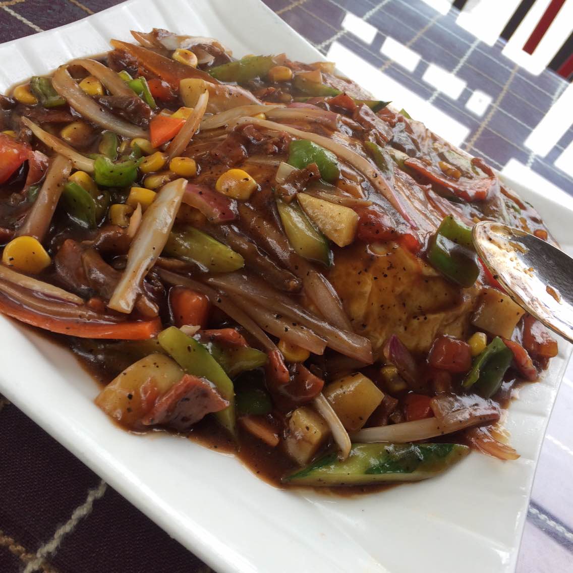 点的黑胡椒培根牛肉芝士蛋包饭 分量特别多 蛋皮非常大一块 很值
