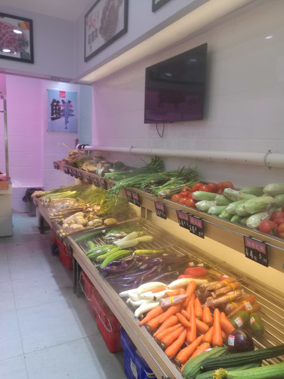 买点常备蔬菜放冰箱。整条鱼是鲜活的再包装的,买单后可以帮忙处理的,回家料理即可。