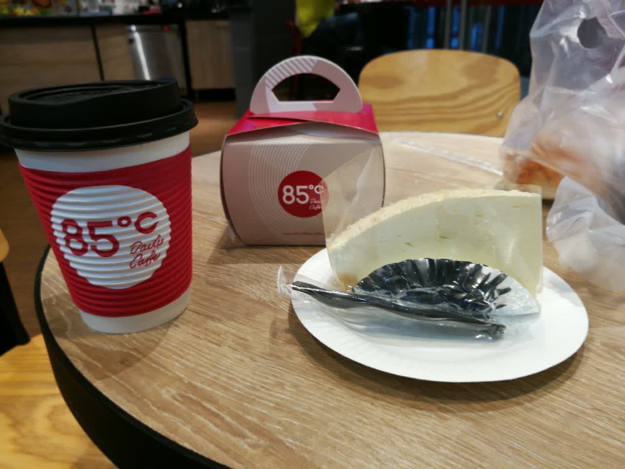 下班罗南新村地铁站出来在85度买点甜点,松子核桃米浆加块帕玛森蛋糕,很惬意!店很干净,生意也很好!