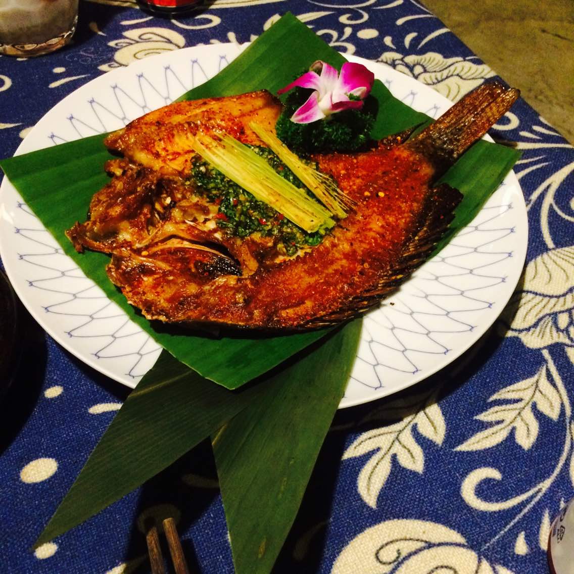 罗非鱼很好吃,火腿木瓜鸡是酸酸的口味也很不错,吃的超级饱,盘子装饰很好看哦