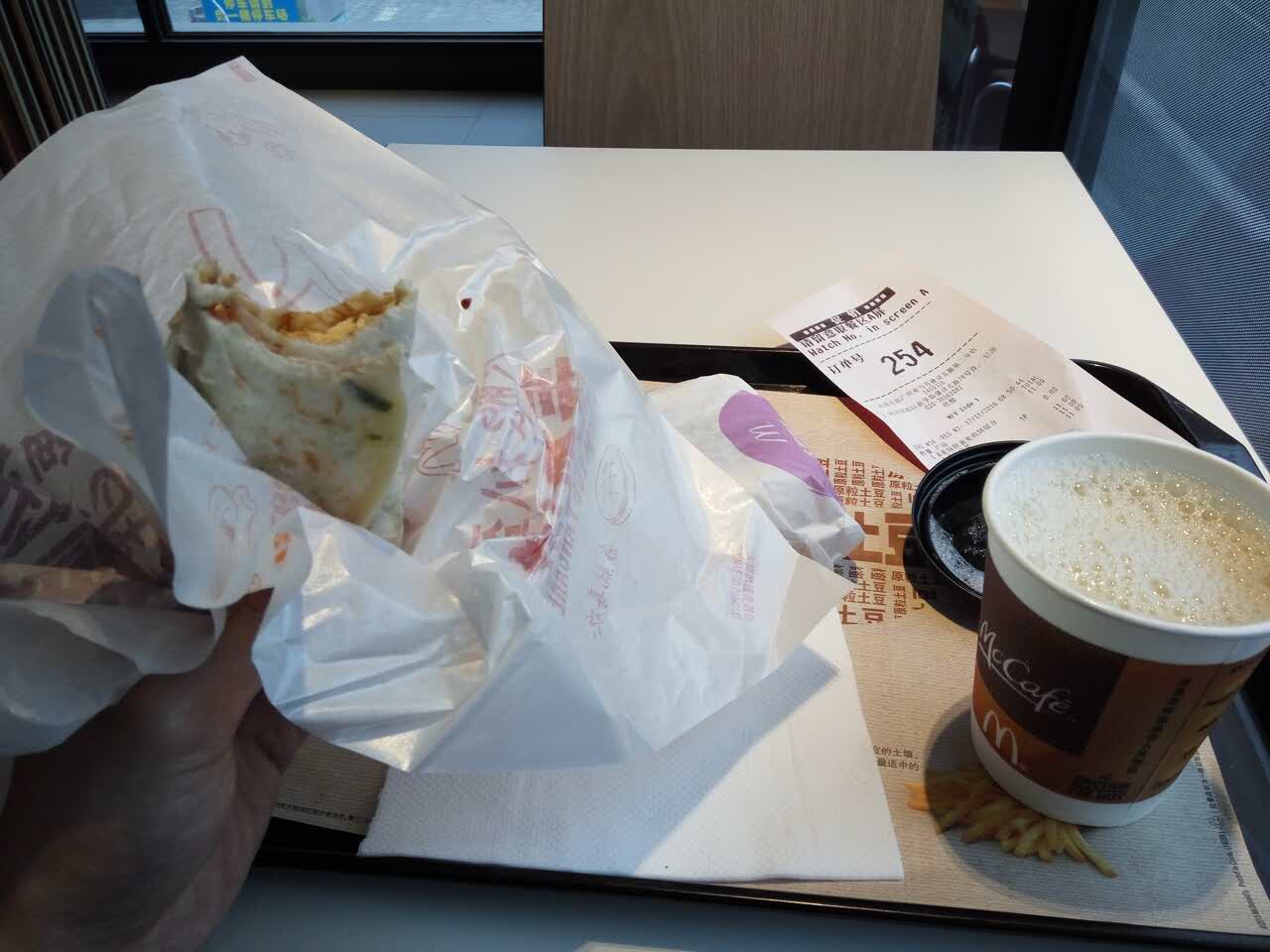 培根蛋麦煎饼很不错,麦满分也很好吃,加上一杯豆浆也不过11元而已,吃过麦当劳早餐,一天精神满满的