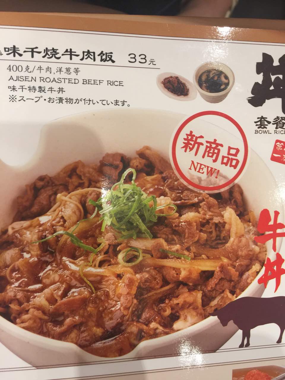 味千烧牛肉饭和盐烧鸡翅串还不错,推荐,炒面略硬了些,香脆猪扒一般