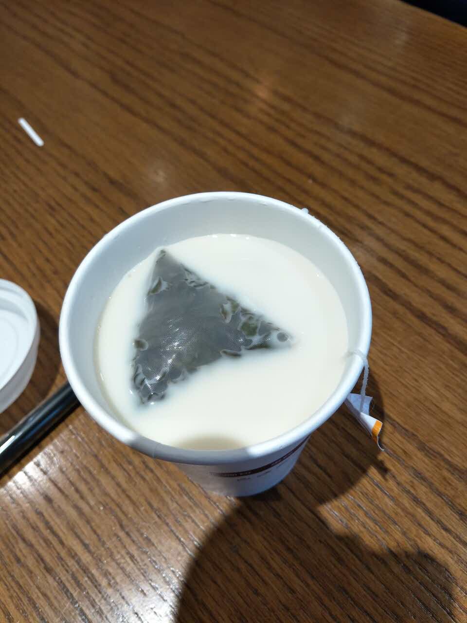 点的港式鲜奶茶,和之前的很不一样,比之前的淡些,没那么甜,也没那么腻,茶的味道挺浓