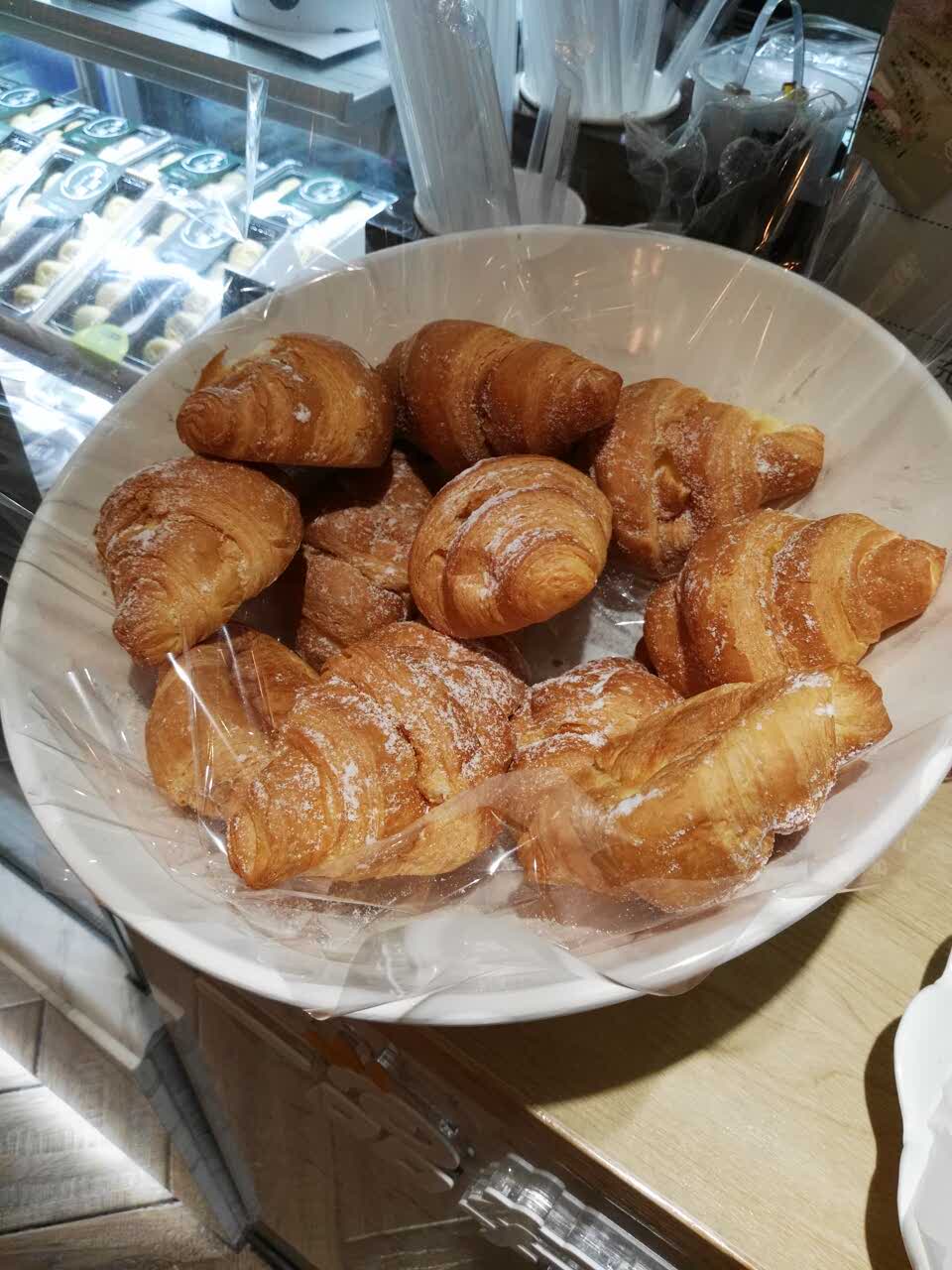 晚上十点过后才去的,牛角包有买三送二的活动,很划算。