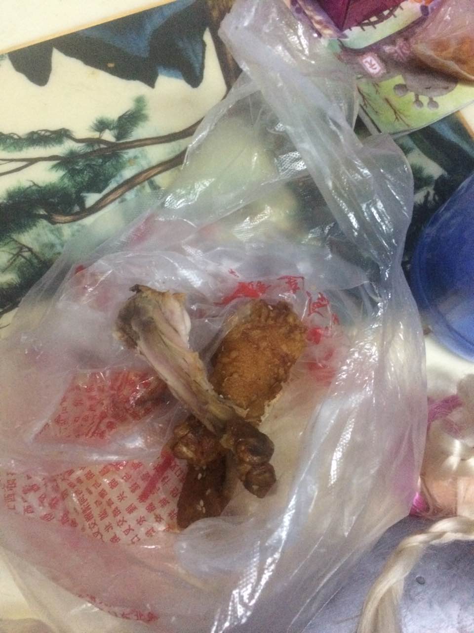 支付宝比现金买便宜三块多钱呢,买了鸡腿还有鸡柳,剩了这么点,赞!