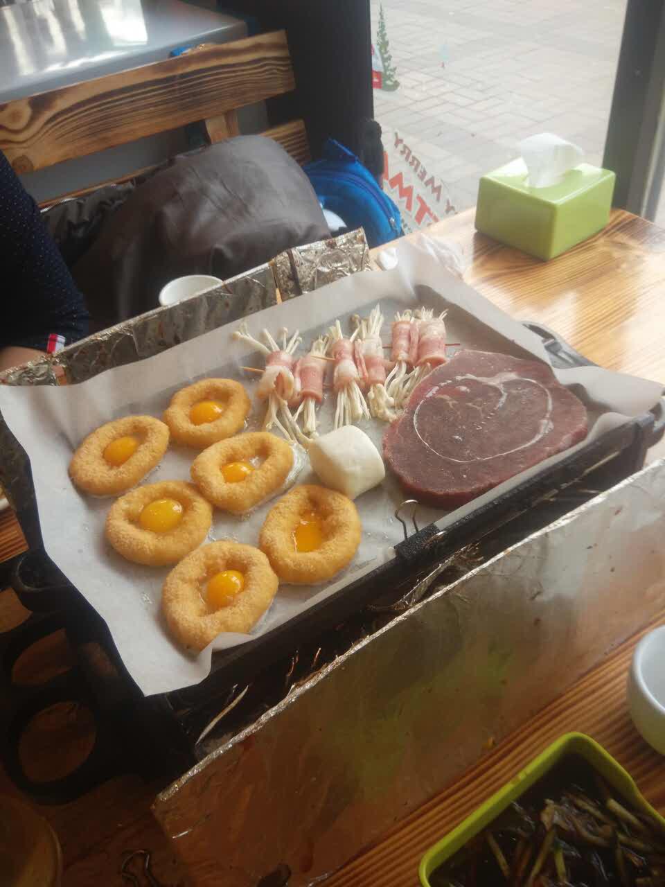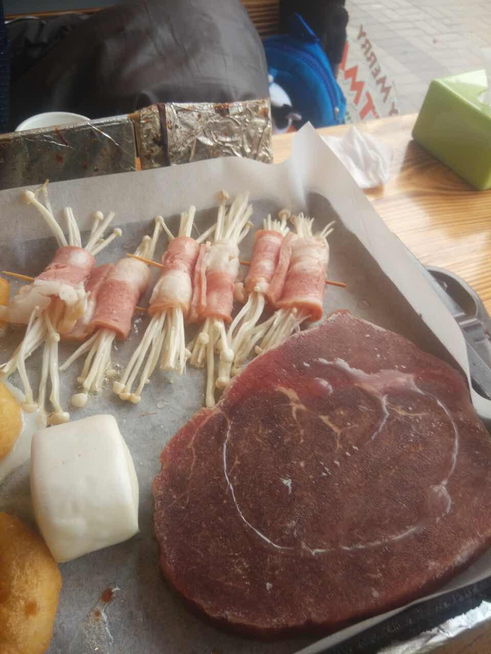 东西很不错,没吃过的可以尝试一下。一切都在纸上烤。俩大人一个小孩单点才185元。