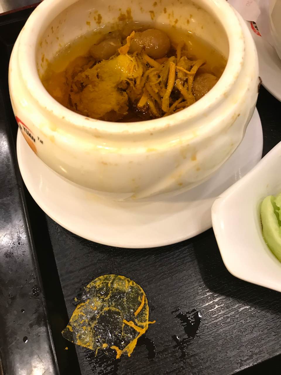 点两菜,菜未上气先吃饱,提醒他们我们的菜还没上菜牌先收走了,反道惹来那个服务员叨叨还瞪眼,这气的。菜上来了,青菜里面还有塑料,好家伙我这边打着字那边汤居然又有塑料,补了汤上来的没有盖子了,好,是我内心黑暗,没敢喝,怕多了东西在汤里面