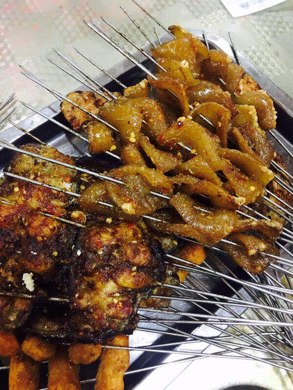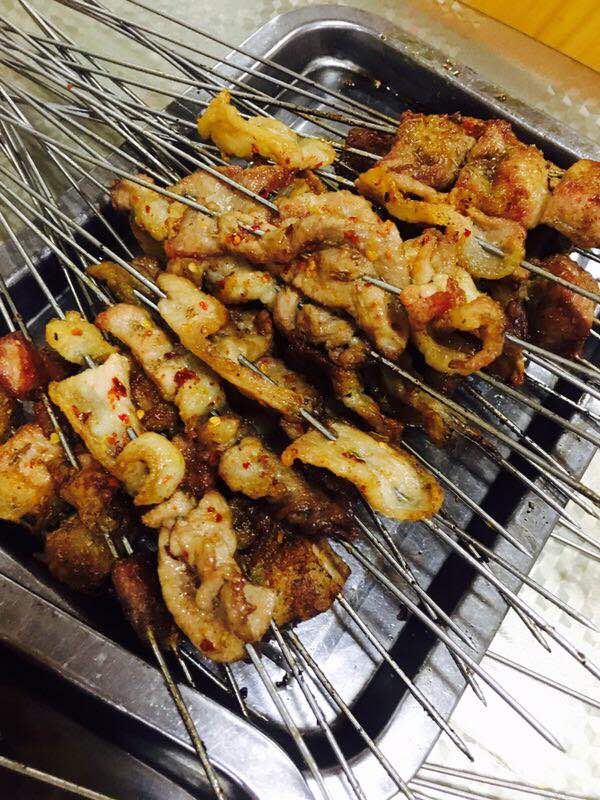 去的时候正好饭点五点多人比较多,在屋子里面选了一个凉快的地方,点菜的时候挺乱的,一个大姐同时点几个桌的,需要重复好多次才能记上,鸡爪和糯米饼好吃,大块肉和五花肉选的有点肥没吃多少,猪皮烤的不错不过热了吃有些腻,稍凉一会儿劲道好吃,金针菇味道有些怪不过也还可以,甜不辣有点干配点蘸料感觉会更好,三个人点的有点多剩下了不少,总体还可以。