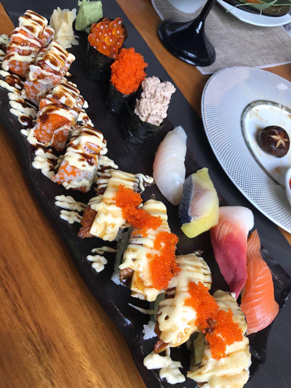 环境超级好,服务也很棒。餐厅位于横琴湾酒店内,整体感觉很舒服,里面有专门的铁板房,推荐铁板牛仔骨,厚切的鱼生很新鲜,还有豚骨拉面。好满足!!