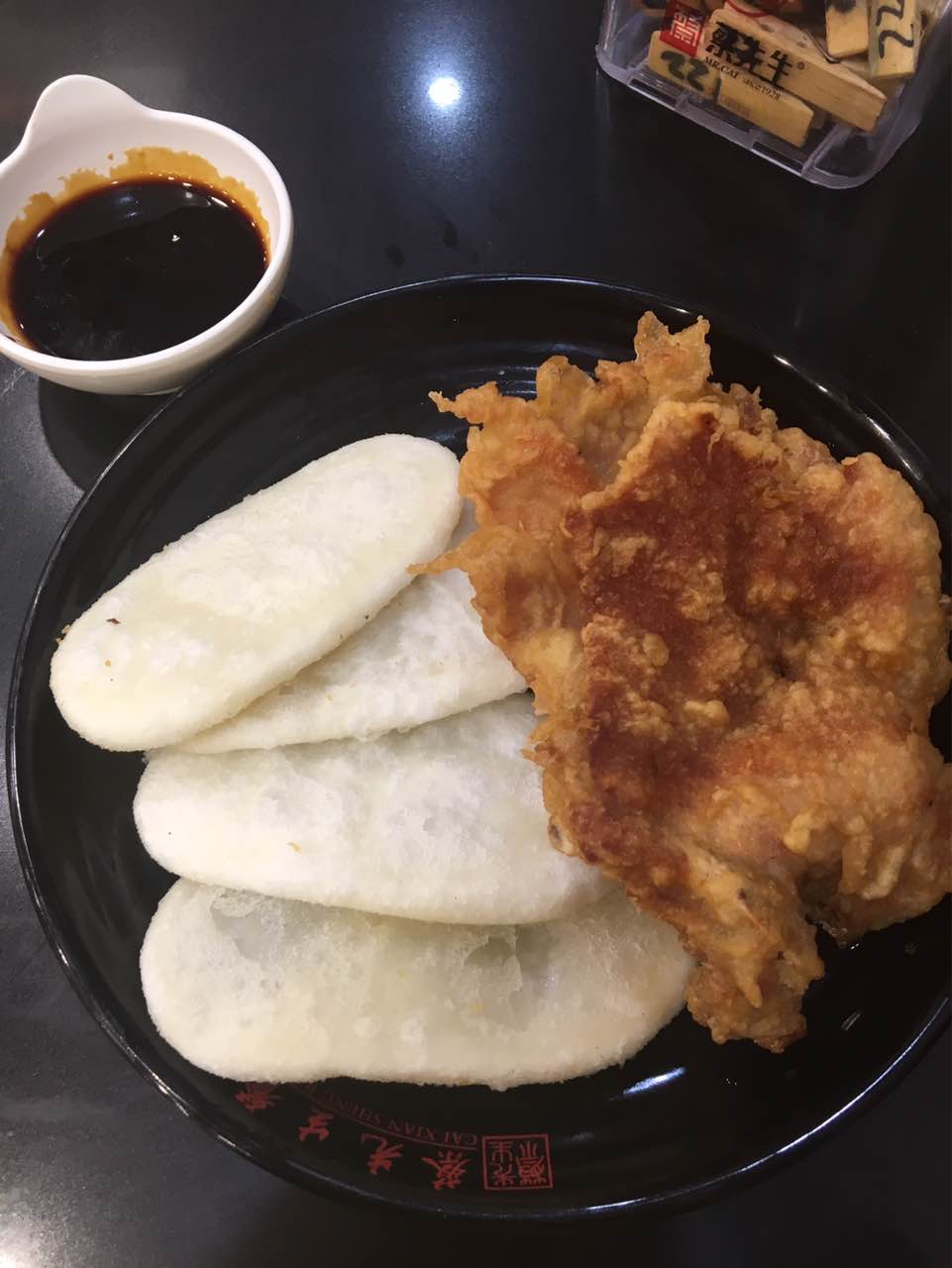 排骨年糕,跟我想象的不一样,不过味道还是不错的,外皮脆里内松软不粘牙,蘸酱甜而不腻,很值得尝一下。