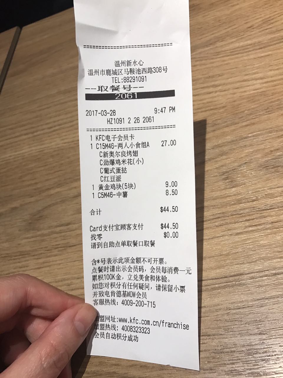这么多东西才不到五十,肯德基会员还是挺划算的!