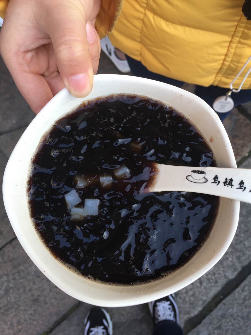 龟苓膏的味道,味清淡,稍甜,很冷的天喝一大口真是太舒服了!!!