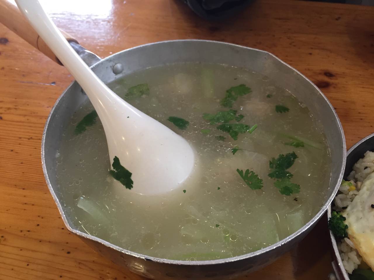家门口的店。环境整洁。口味也不错。可是为嘛不提供白米饭啊。。。冬天很爱吃热汤面,冬瓜丸子汤。