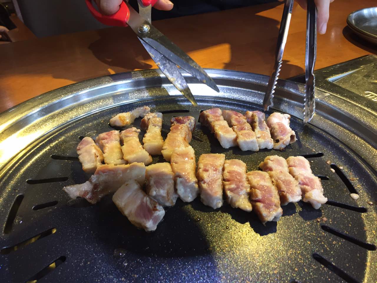 肉很厚实,个人建议五花肉,梅花肉太精了,我烤肉喜欢吃带点儿皮的,还有炒饭挺好的,烤完肉放烤盘上炒饭