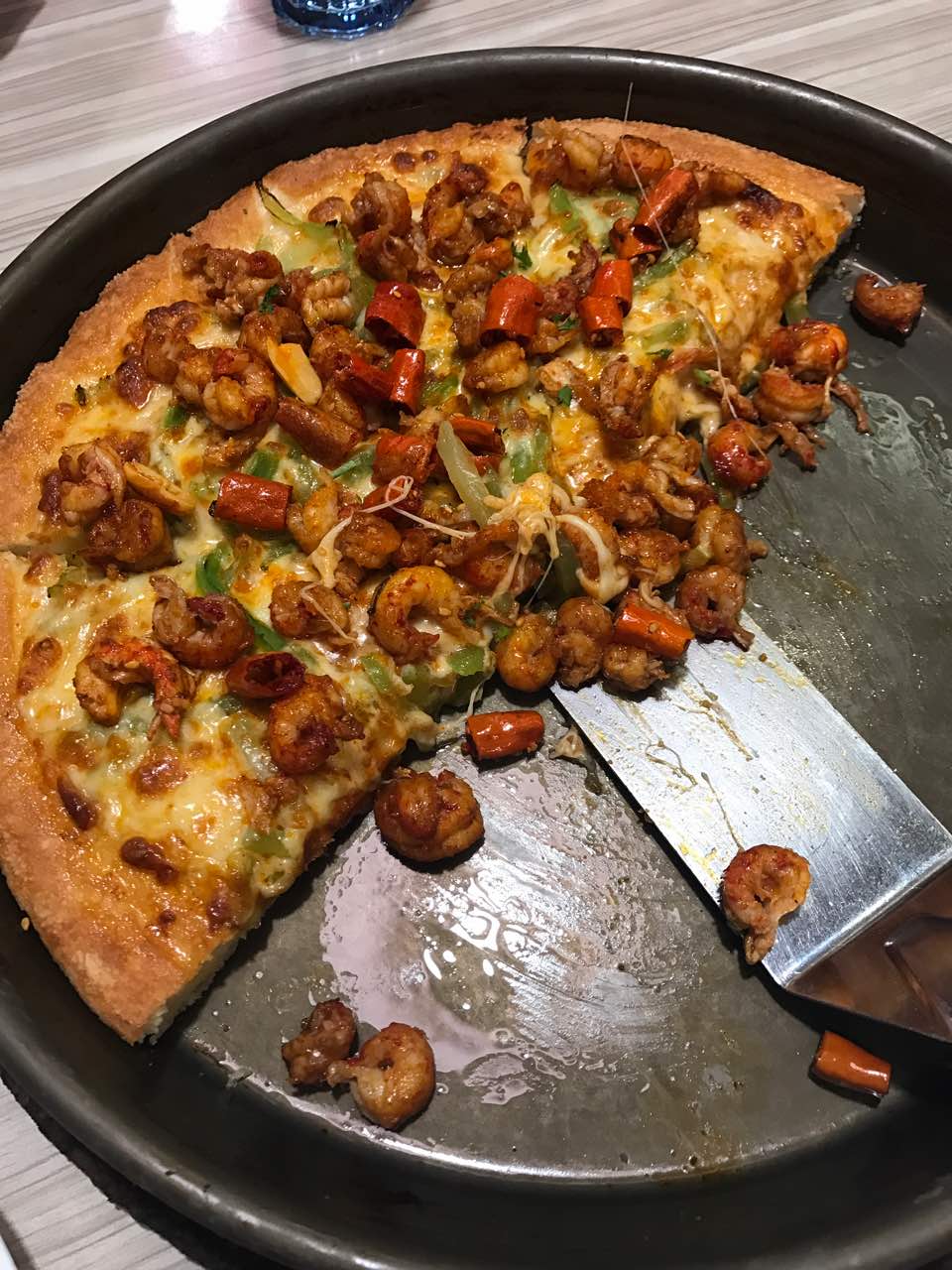小龙虾的披萨真的很好吃,孩子们吃的特别开心,吃比萨还是必胜客的好会一如既往的支持下去