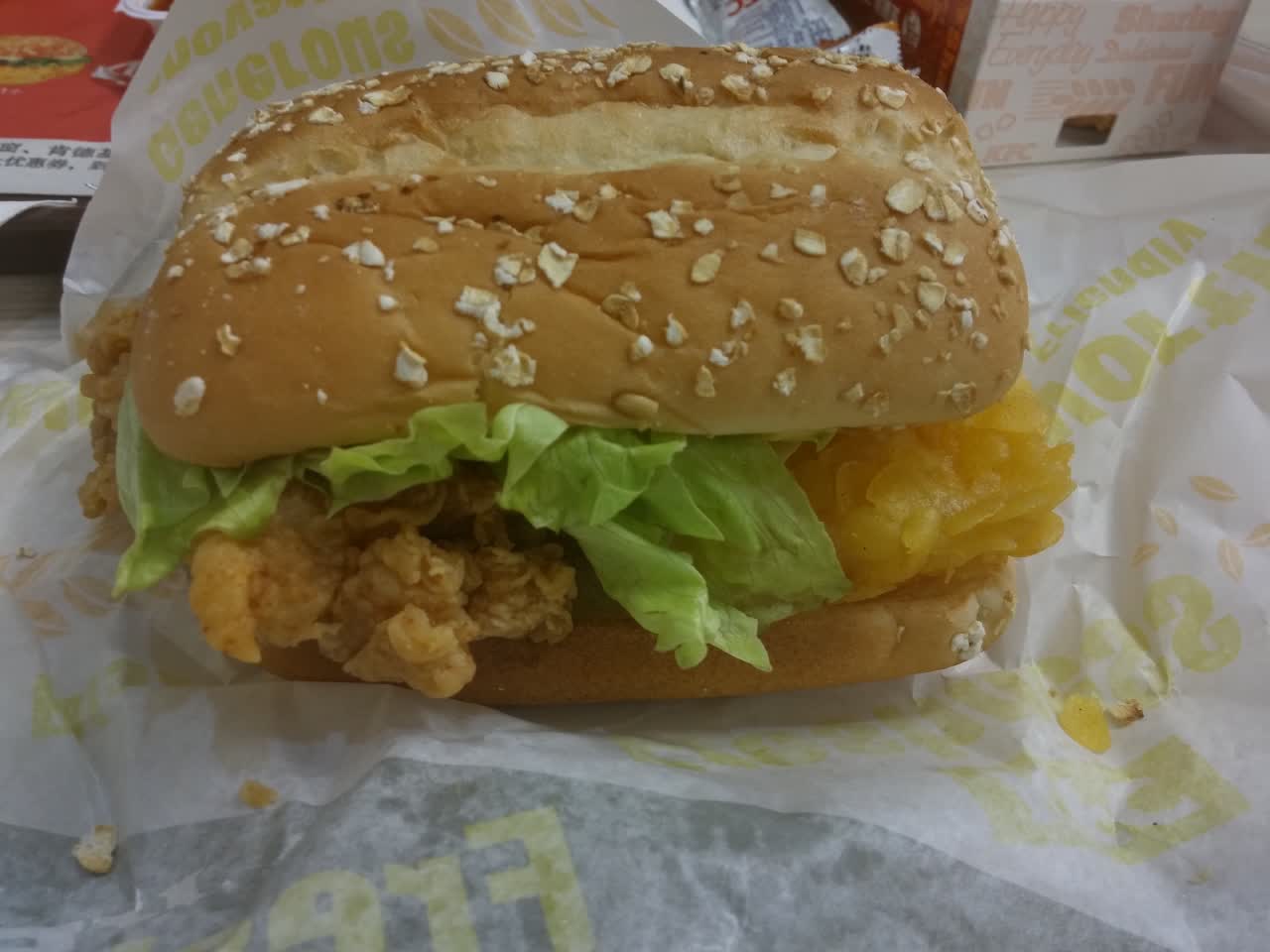 环境非常好,位置好,味道很好,特别是两个汉堡和两瓶饮料!服务美女更好