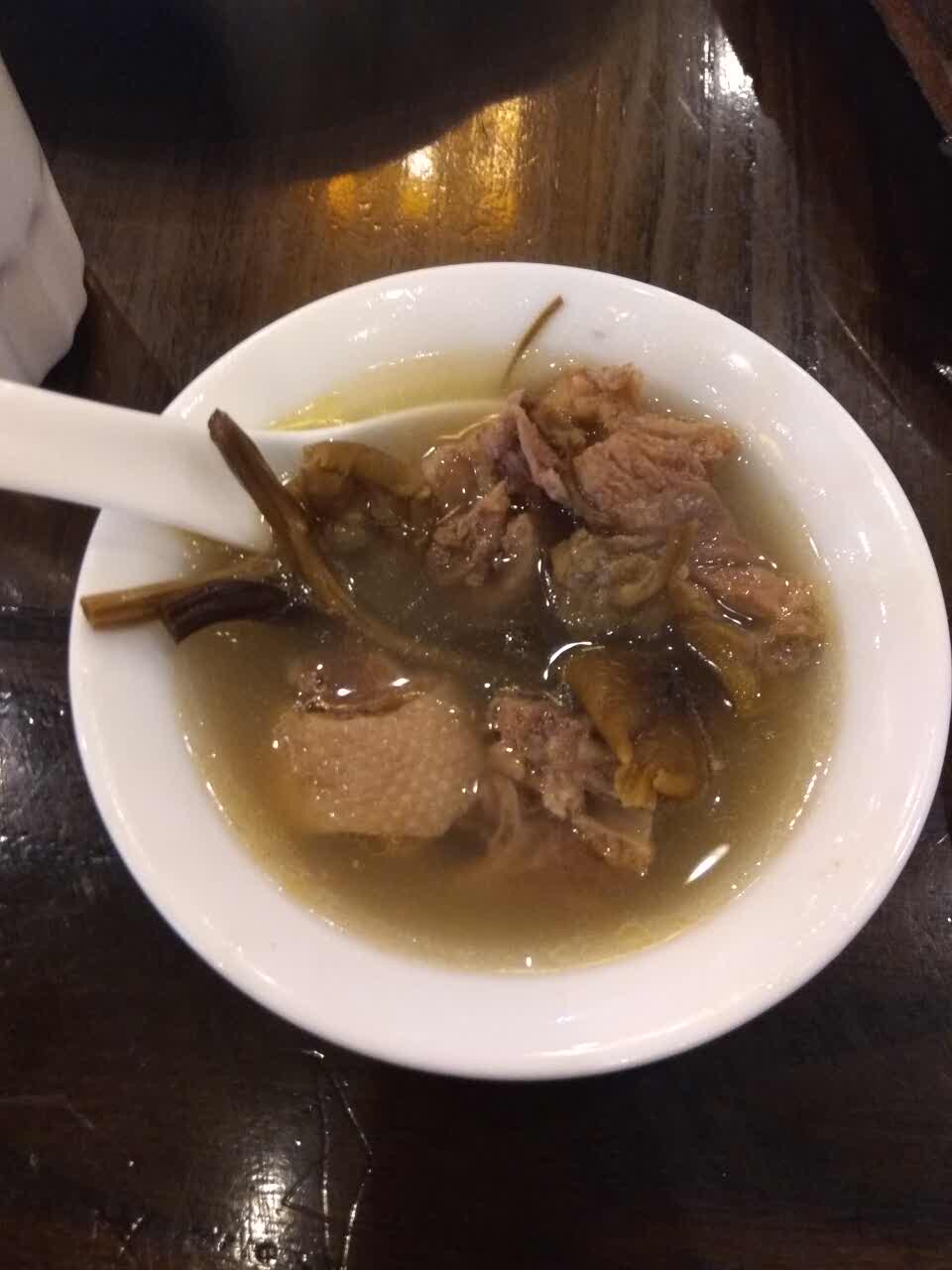 汤还可以就是鸭肉没烂,有点不好咬,虾不错,其他味道有点淡了