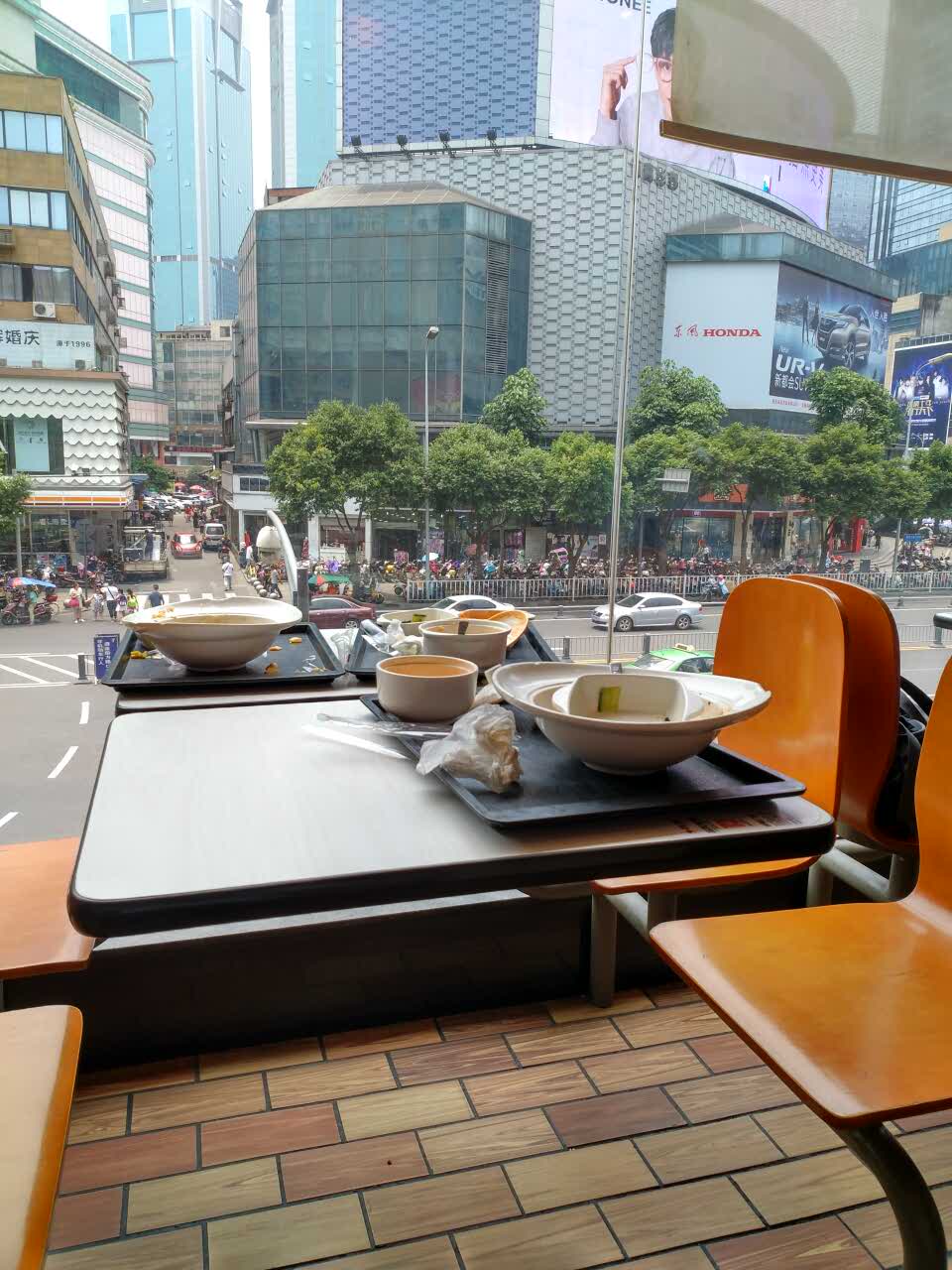 到处都是吃完的碗筷没有收拾
