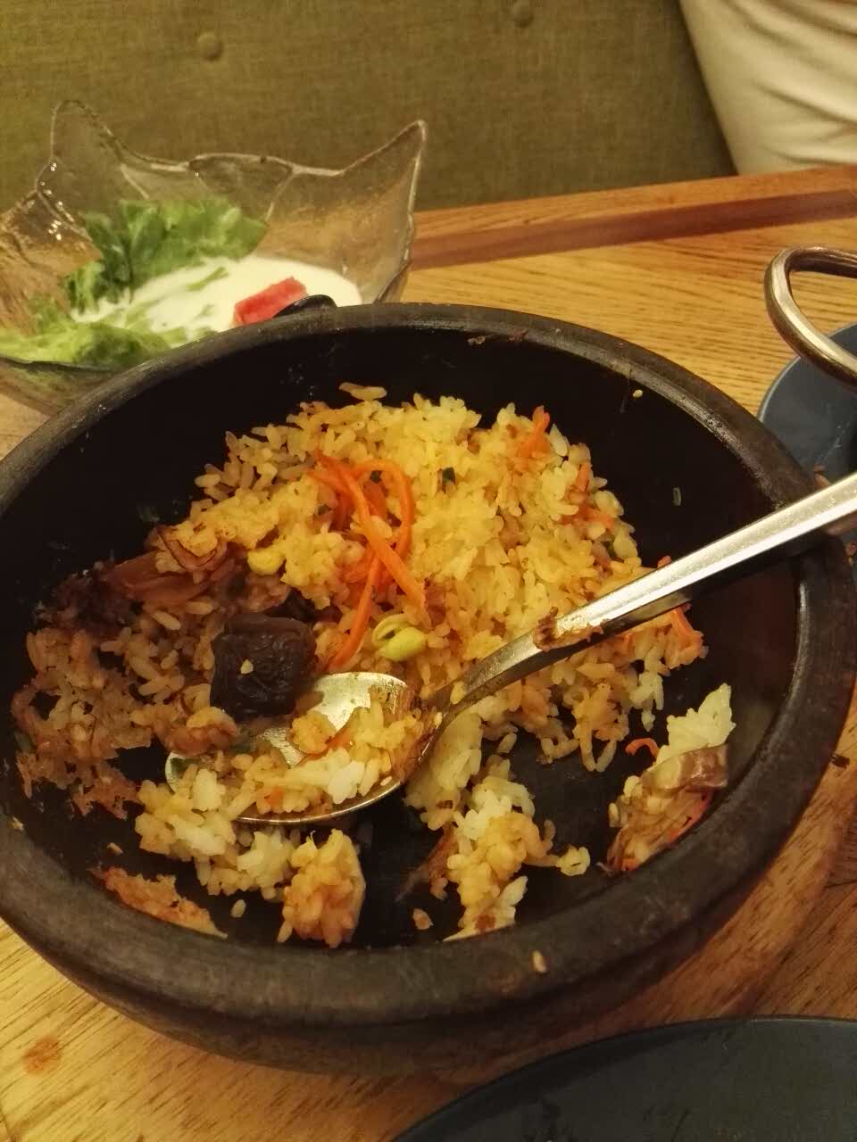 网友2017-06-19隔了一段时间才来 不知道是换了厨师 还是晚上去的原因,口味感觉变差很多,石锅饭的米饭都是剩饭,...隔了一段时间才来 不知道是换了厨师 还是晚上去的原因,口味感觉变差很多,石锅饭的米饭都是剩饭,难以下咽,鱿鱼还可以吧。