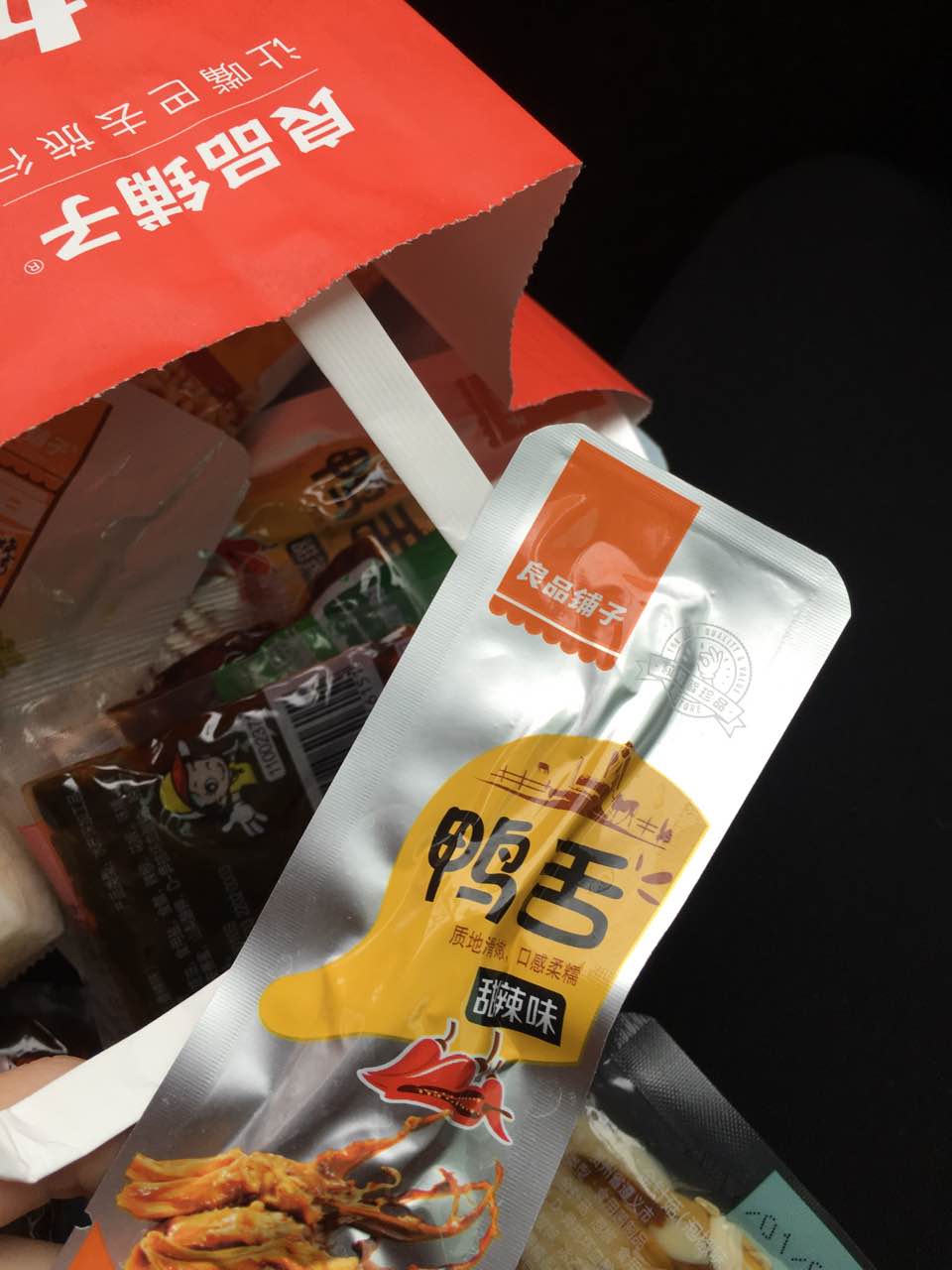 最爱吃良品铺子的鸭舌啦!特别好吃,买了一堆小零食回家大吃特吃