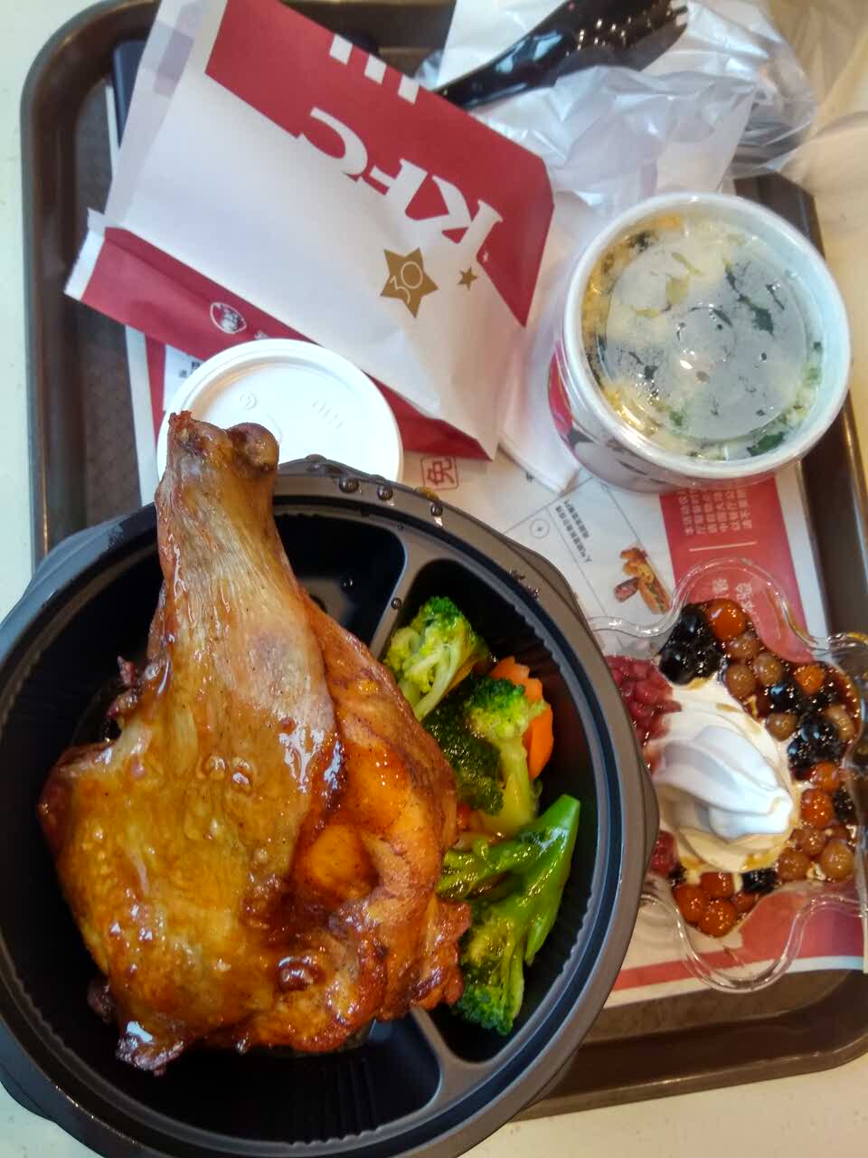 还好找到靠窗边的位置,坐的舒服,享受会员福利:0.8元土豆泥,2.5元原味鸡好幸福多搞活动