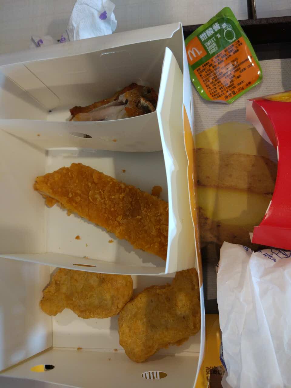 菠萝派孩子喜欢吃,鸡排微辣很好吃,薯条?烤鸡翅?不如肯德基,