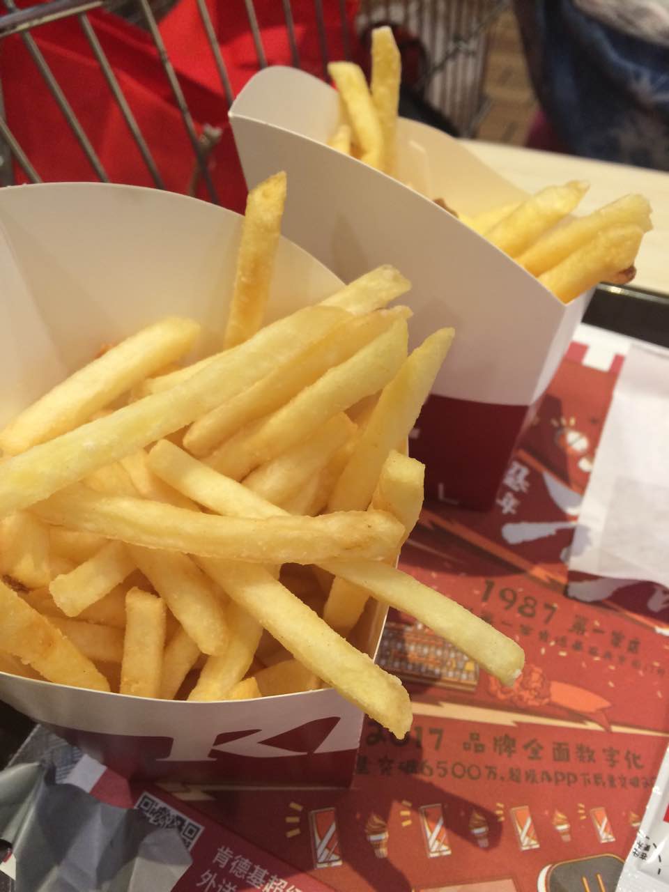 薯条买一送一,雪糕买一送一,再加个免费辣翅,实付20.5元。肯德基还是对中国人挺好的。
