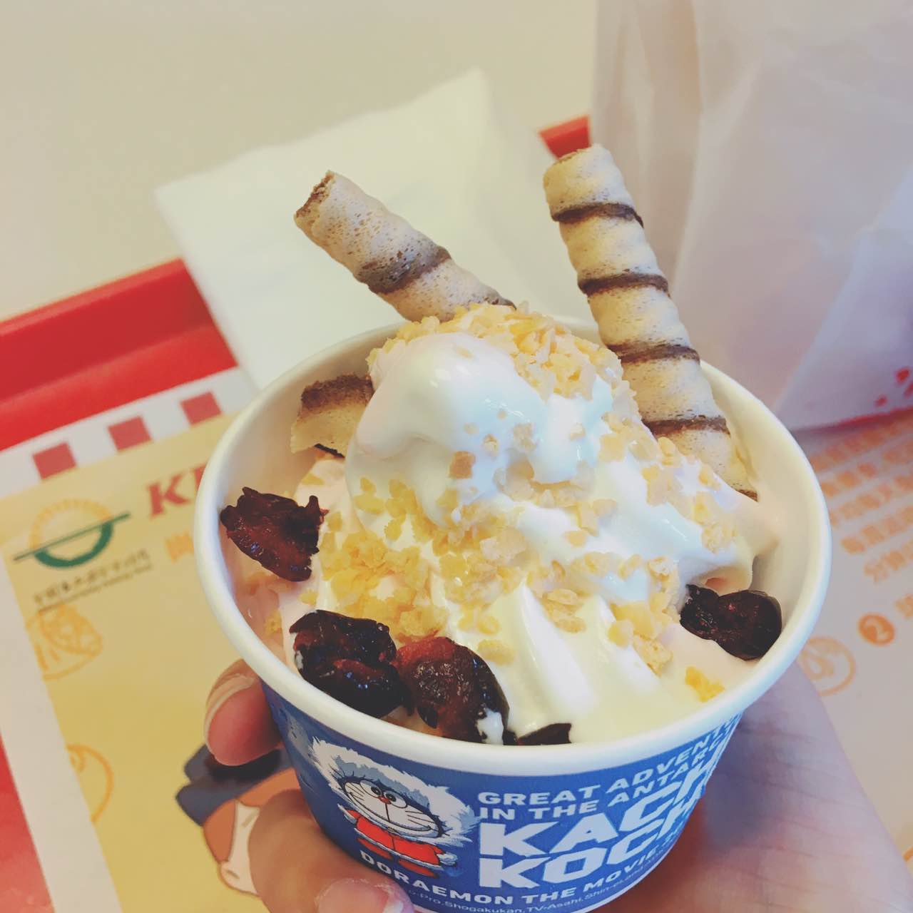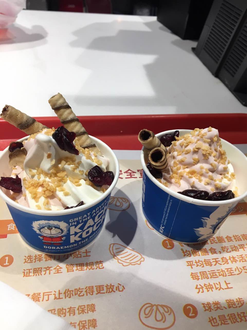 网友2017-07-02新出了一款哆啦A梦限定杯,草莓双旋,超级好吃,也就8快,和普通的差不多的价格新出了一款哆啦A梦限定杯,草莓双旋,超级好吃,也就8快,和普通的差不多的价格。可惜去的时候原味鸡没有三角了