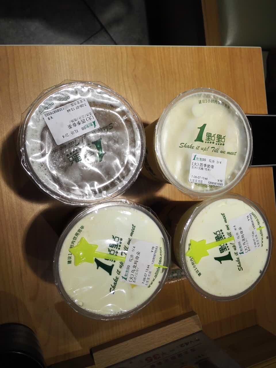 个人觉得一点点的茶比coco好喝,珍珠非常好吃,加料也不用钱不管什么时候人一直很多,连外卖小哥都不少,周末时,小小一个店铺能站满九个工作人员,还有一个在外边不停地秤茶叶。个人觉得一点点的茶比coco好喝,珍珠非常好吃,加料也不用钱。大推奶青与四季青茶