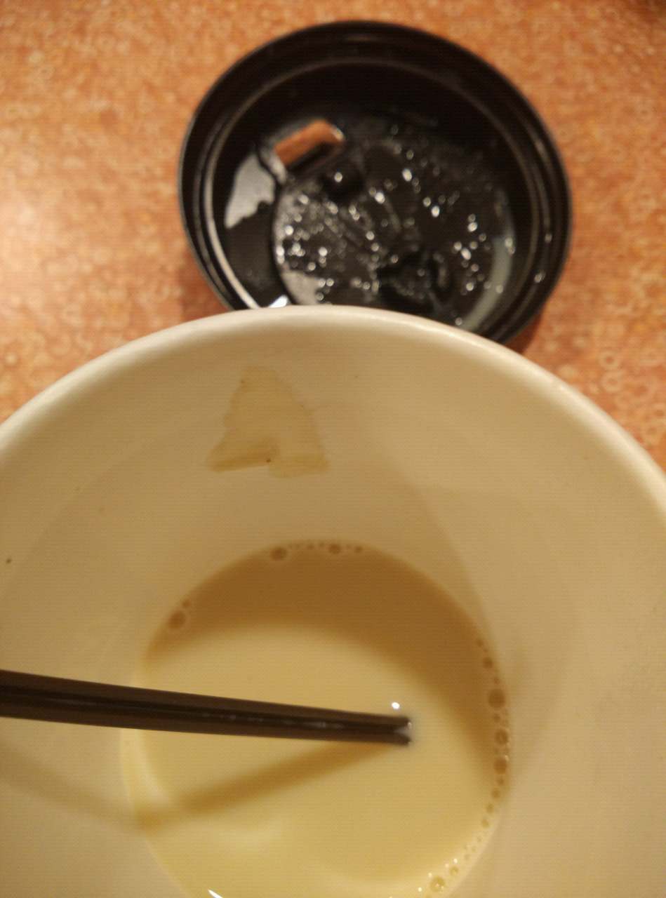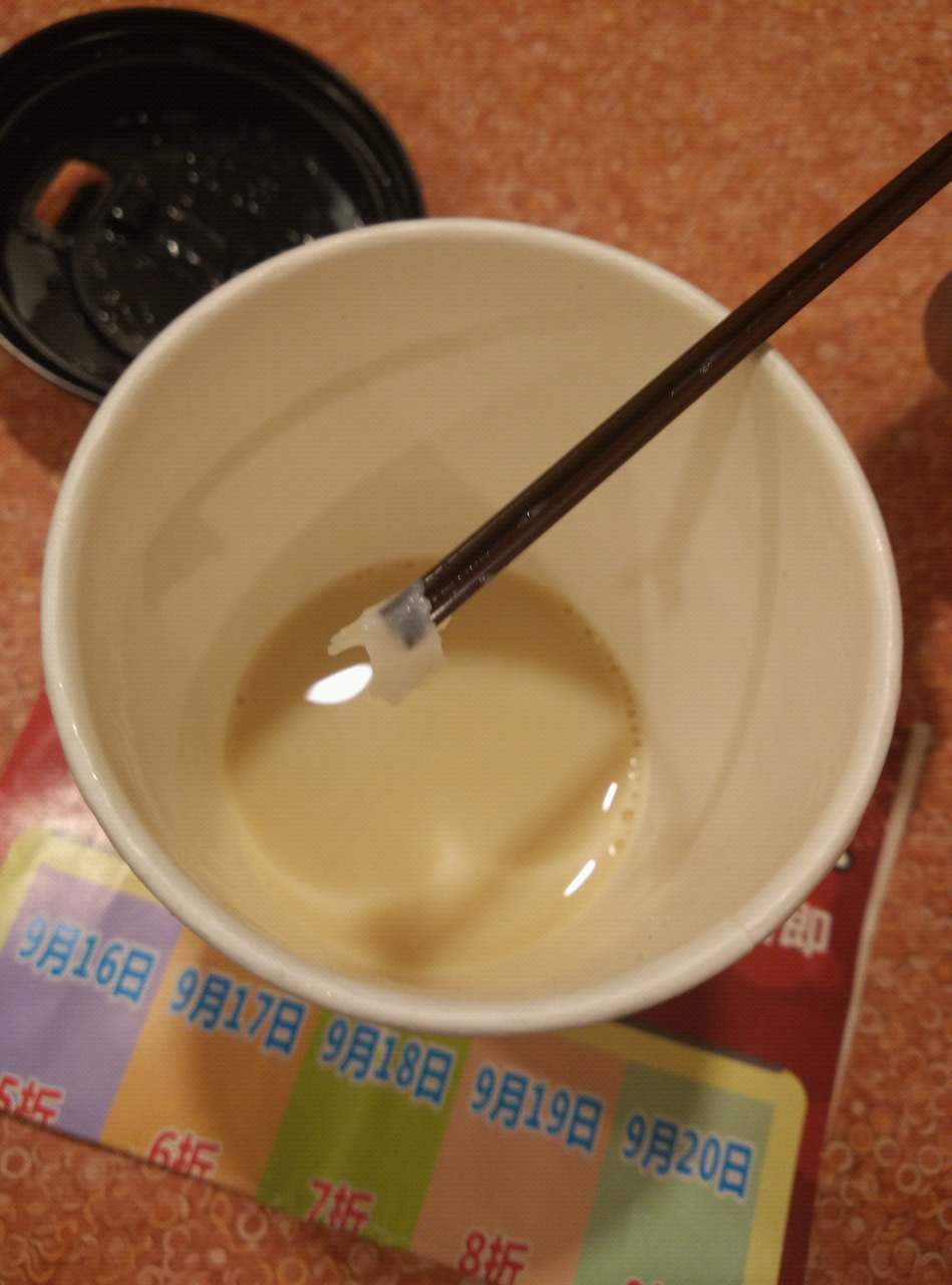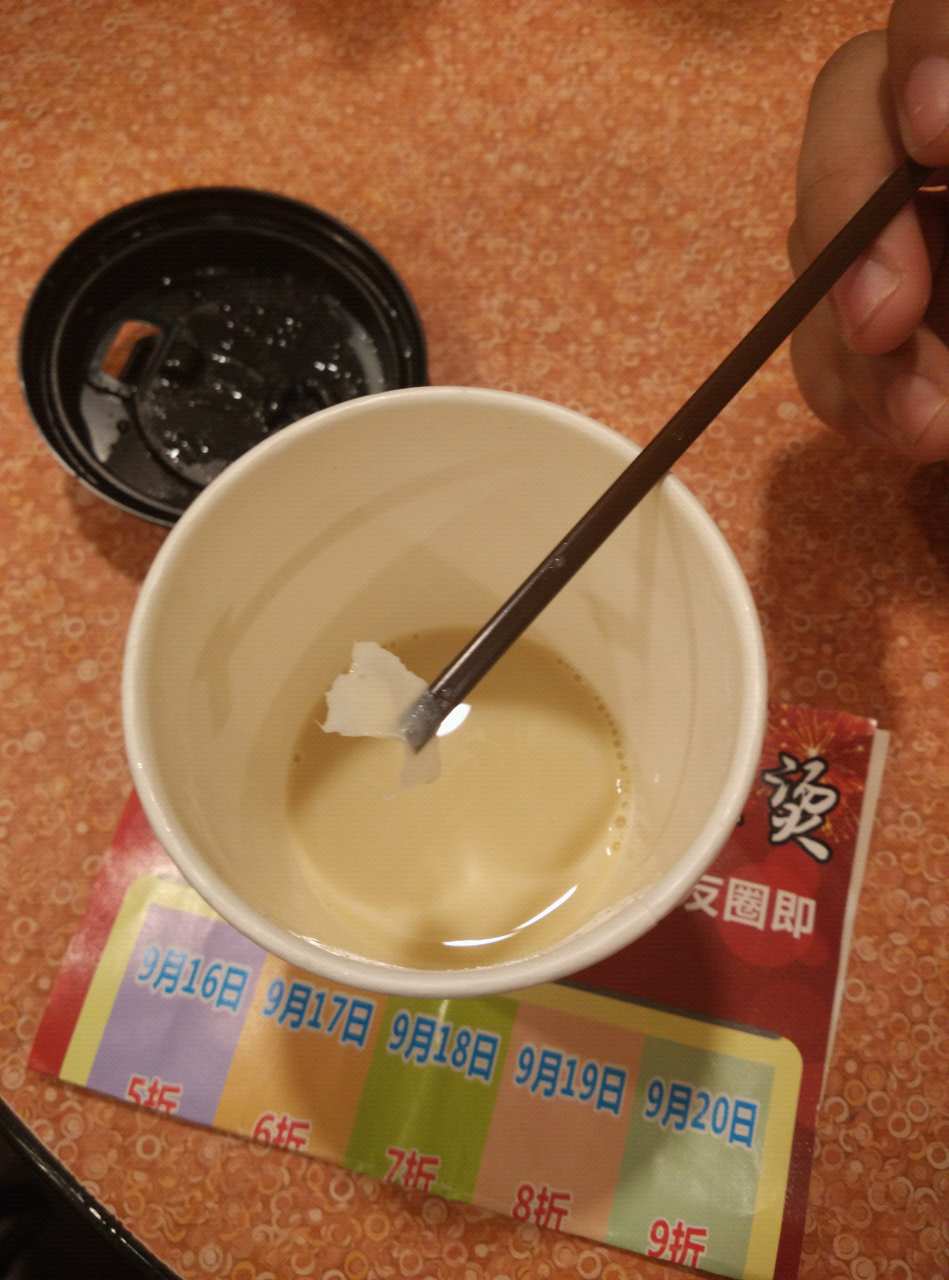 在核桃味的豆浆里发现块纸,还好小朋友没喝下去,这样的食品安全质量让人反胃,不会再去光顾