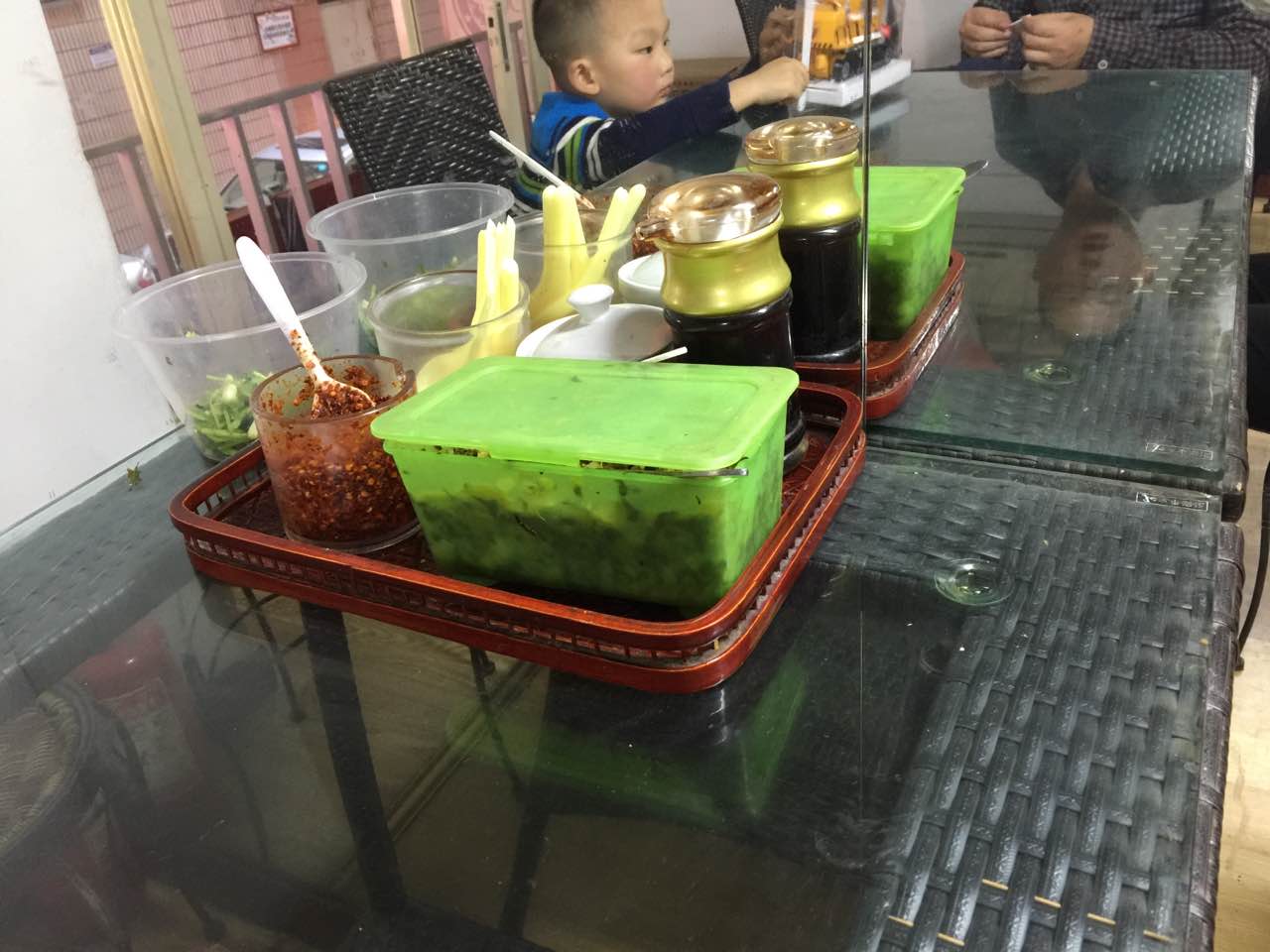 非物质遗产的鱼丸面环境不好,桌子上都是灰尘,调味料看起来脏,感觉现在都是送外卖