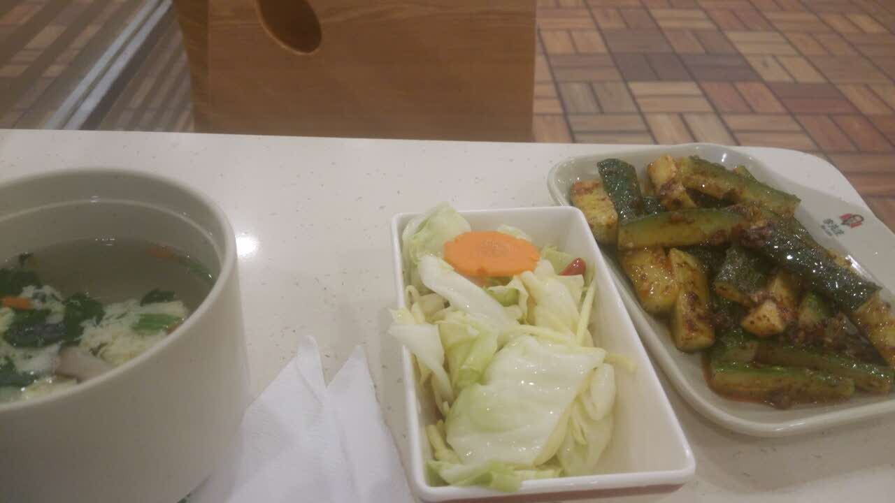 梅菜扣肉饭还是比较好吃的,凉菜喜欢麻辣黄瓜和花生米海带,放点醋那就更好了