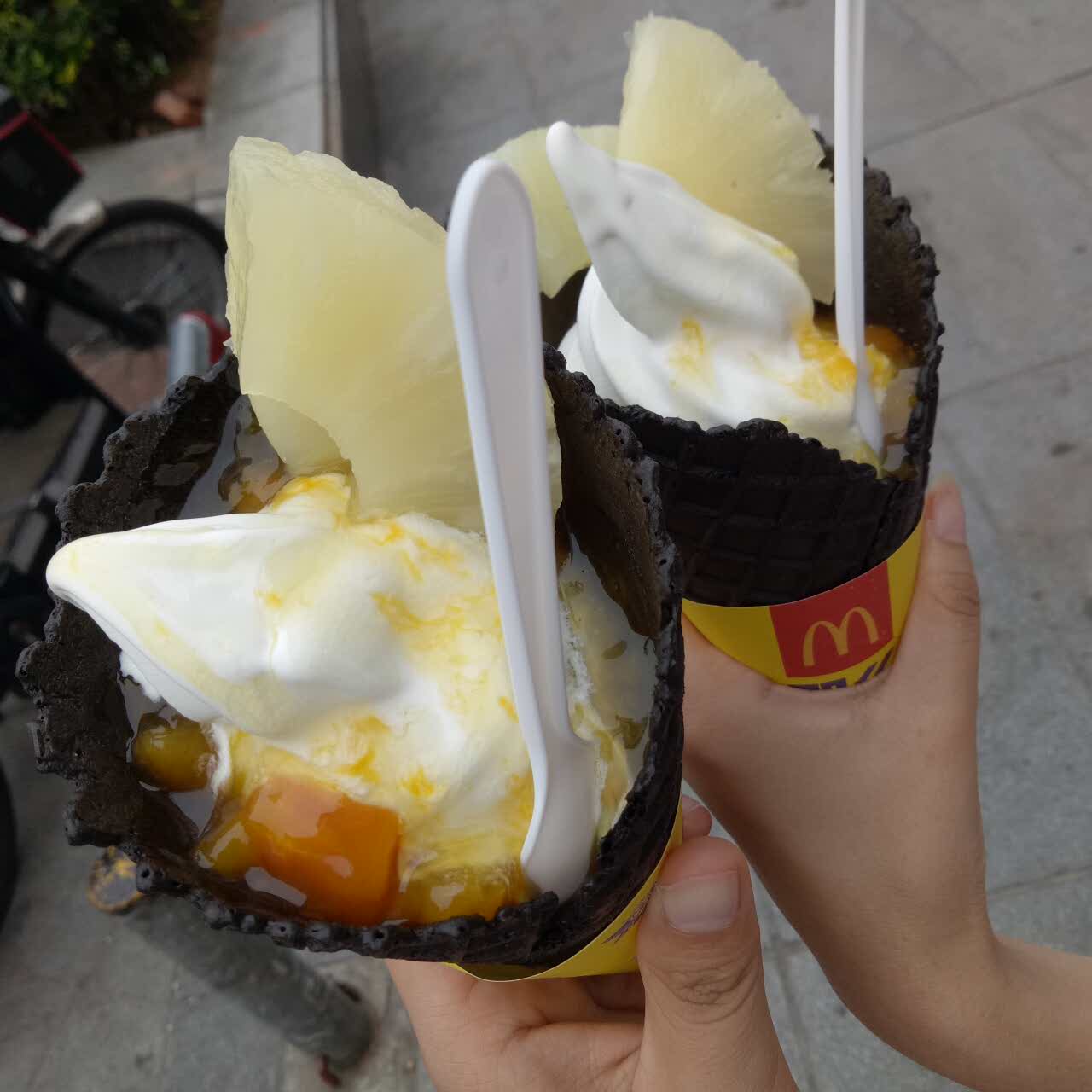 网友2017-07-20还是芒果的好吃,有大块果肉。超过瘾!满足!还有花了5元吃的麦旋风也是很满足啦前两天和同学吃那么大甜筒!!超过瘾!满足!还是芒果的好吃,有大块果肉。还有花了5元吃的麦旋风也是很满足啦。