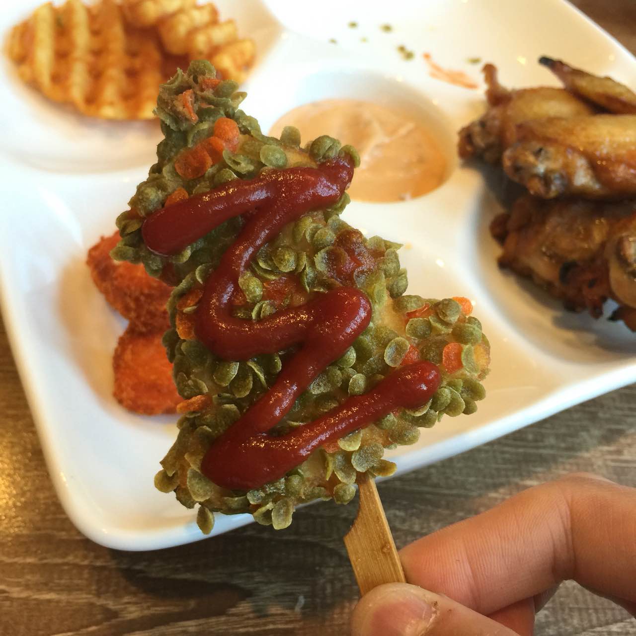 网友2016-12-19新出的圣诞套餐,小吃造型很别致,披萨两个人吃分量感觉有点多,芝士边太厚很容易腻位于瑞景商业广场一楼,三层楼,重新装修后环境很不错。新出的圣诞套餐,小吃造型很别致,披萨两个人吃分量感觉有点多,芝士边太厚很容易腻。