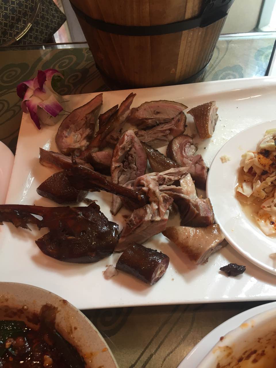出门后才发现有天天特价,点菜时服务员也没提醒,晕哦!店里空调效果倒是很好!共计花费109元三个人,点了一份水煮肉片,一份鸭子,一份鱼香茄子,一个小份麻婆豆腐。共计花费109元。出门后才发现有天天特价,点菜时服务员也没提醒,晕哦!店里空调效果倒是很好!